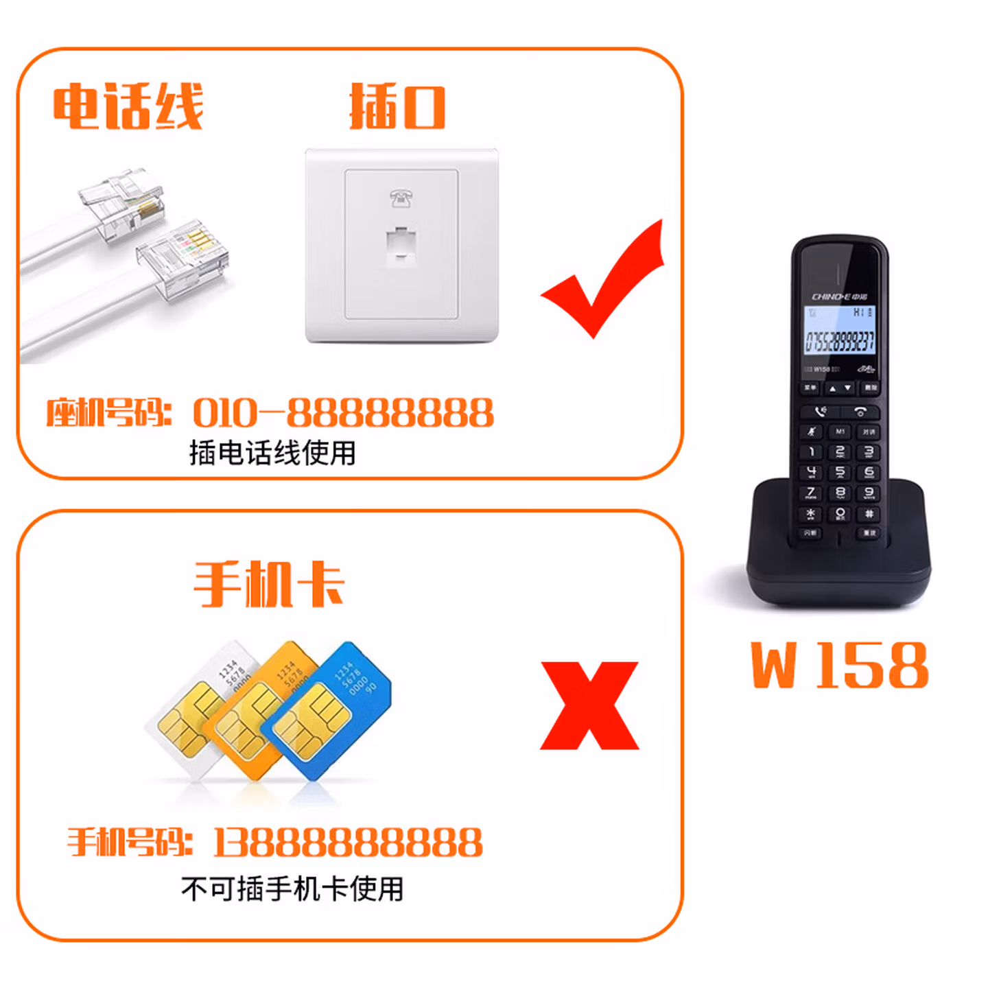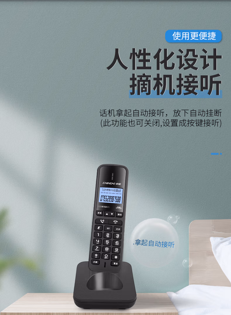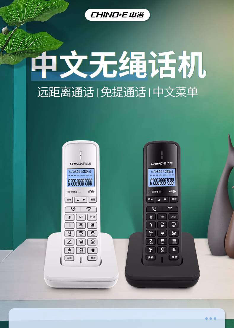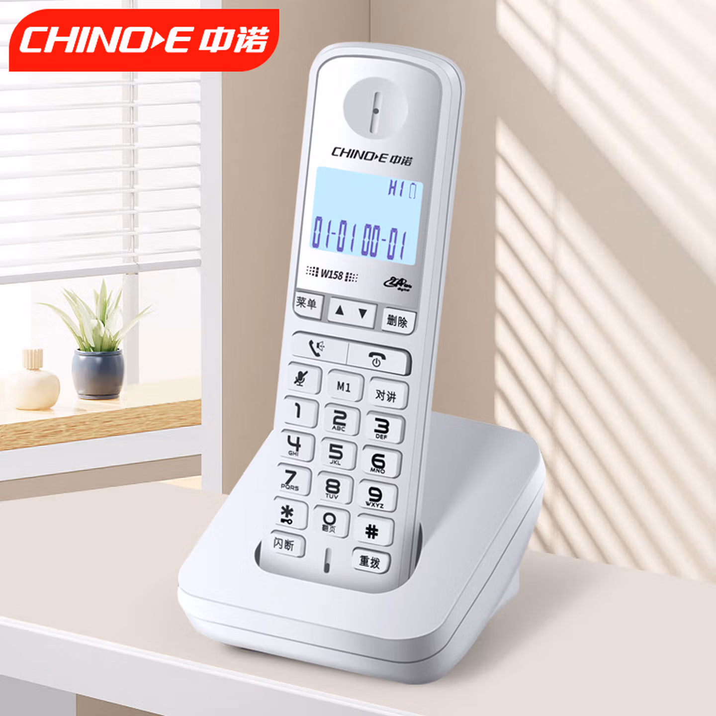 中诺无绳单机电话机中文菜单白屏背光单键拨号无线主机座机固定电话W158黑色