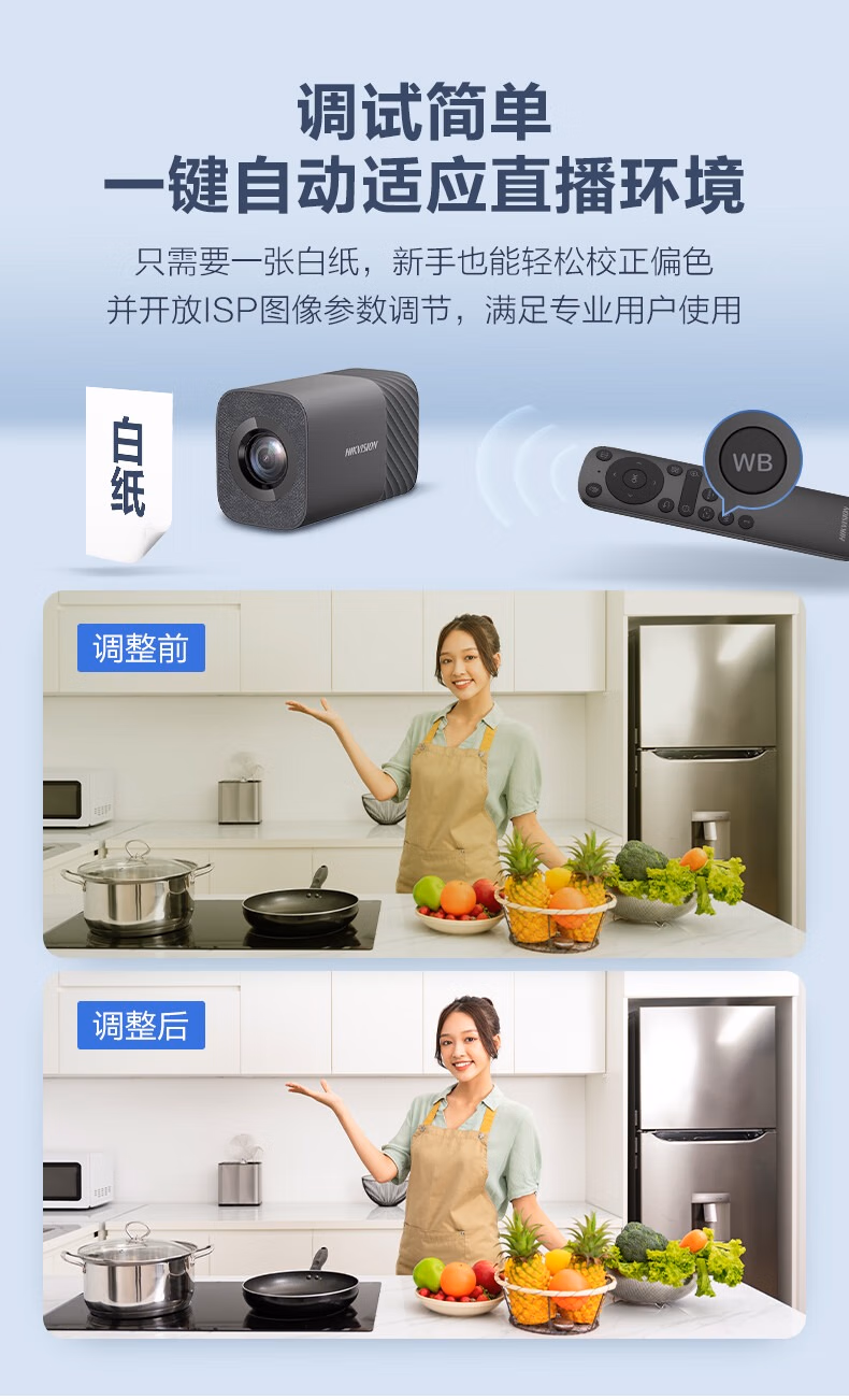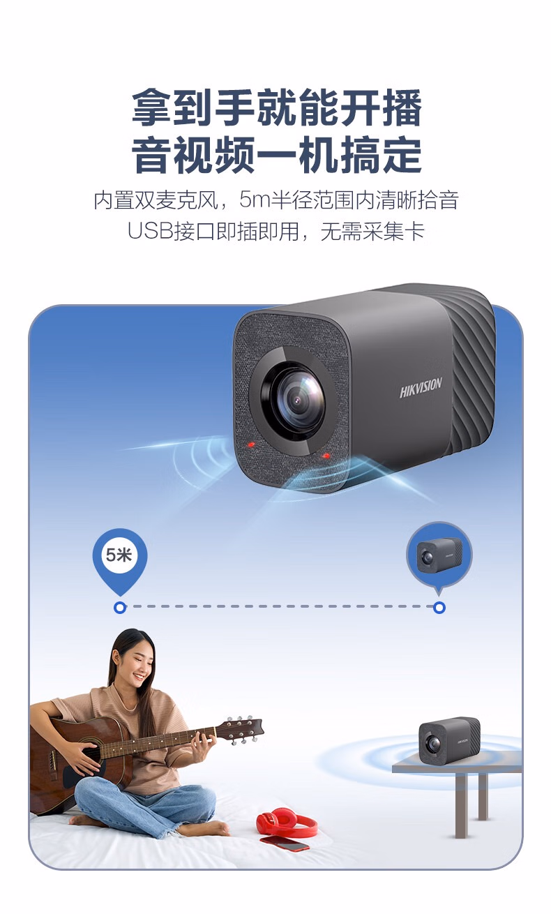 > HIKVISION海康威视电脑直播摄像头4K超清摄像机8倍变焦升级tof聚焦竖屏网络娱乐抖快直播带货设备U168R pro