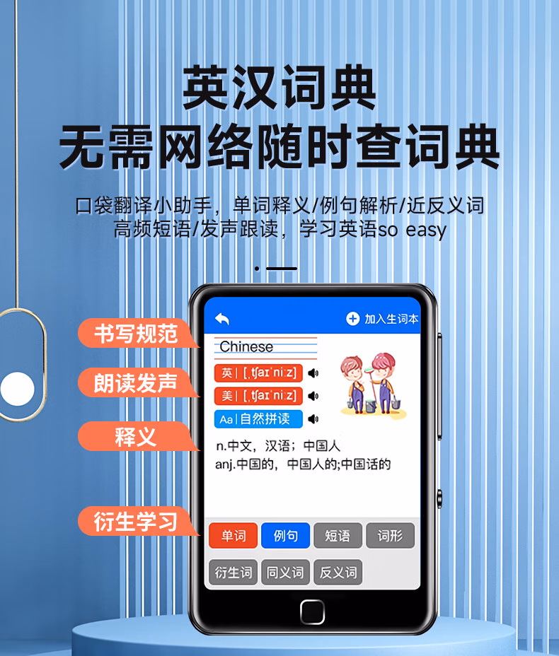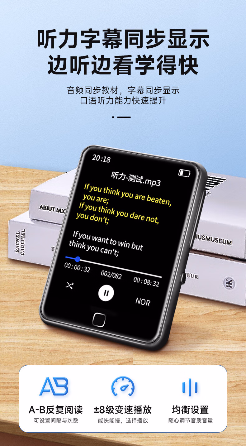 > 纽曼A23 mp3/mp4播放器无损音乐随身听 2.4英寸蓝牙5.3词典电子书录音学生听力复读机闹钟 触屏-蓝牙-发声词典-32G