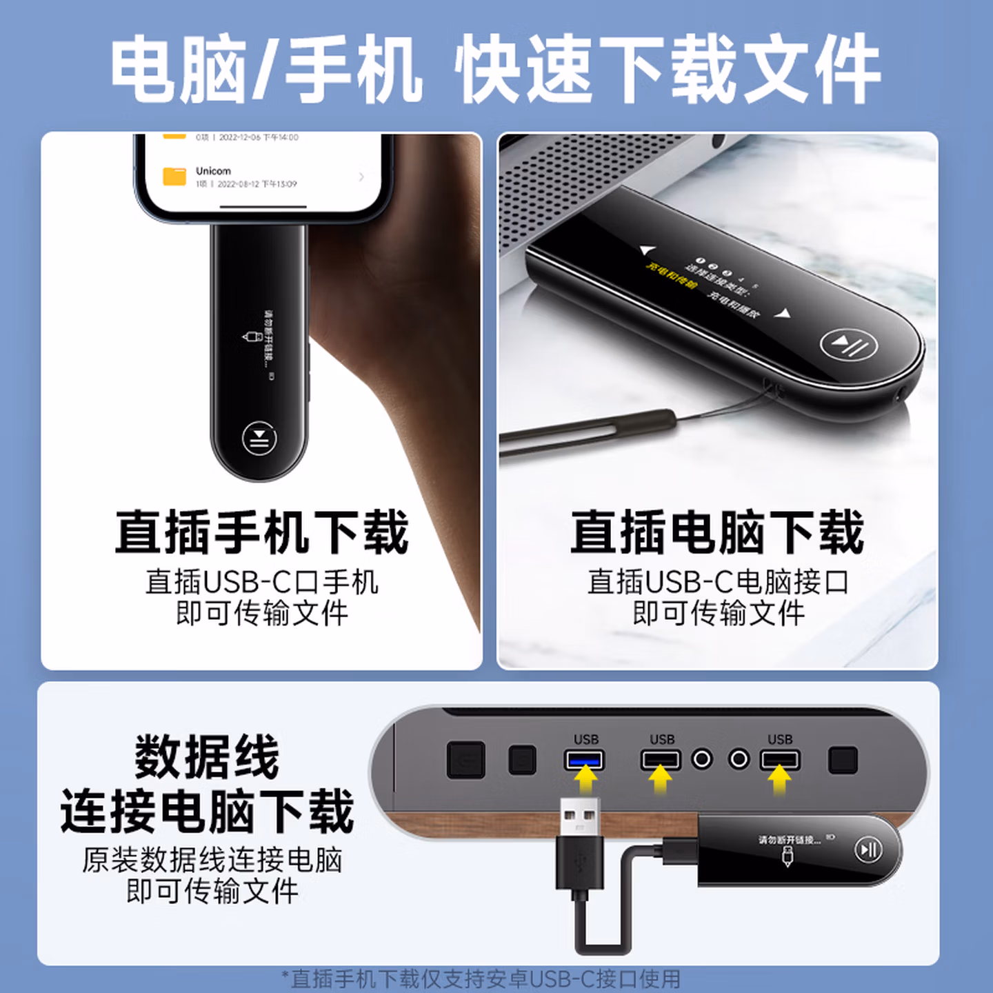 > 梵沐PA05 32G mp3音乐播放器 mp4蓝牙学生随身听英语 蓝牙 录音 运动跑步 U盘式手机直插下载 USB-C口