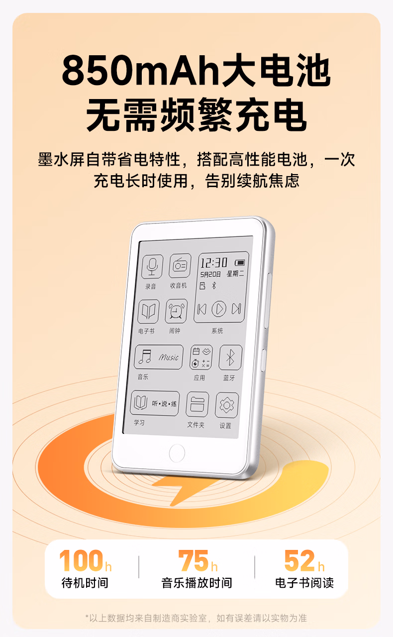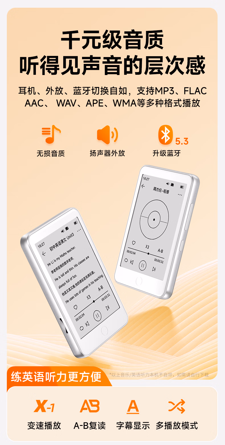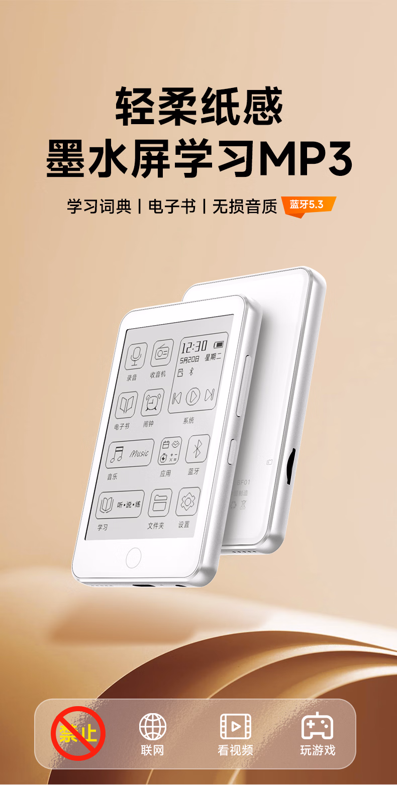 > 梵沐 BF01 mp3/mp4播放器墨水屏 电子书阅读器无损音乐随身听英语 电纸书 32G内存 蓝牙外放 夜读版