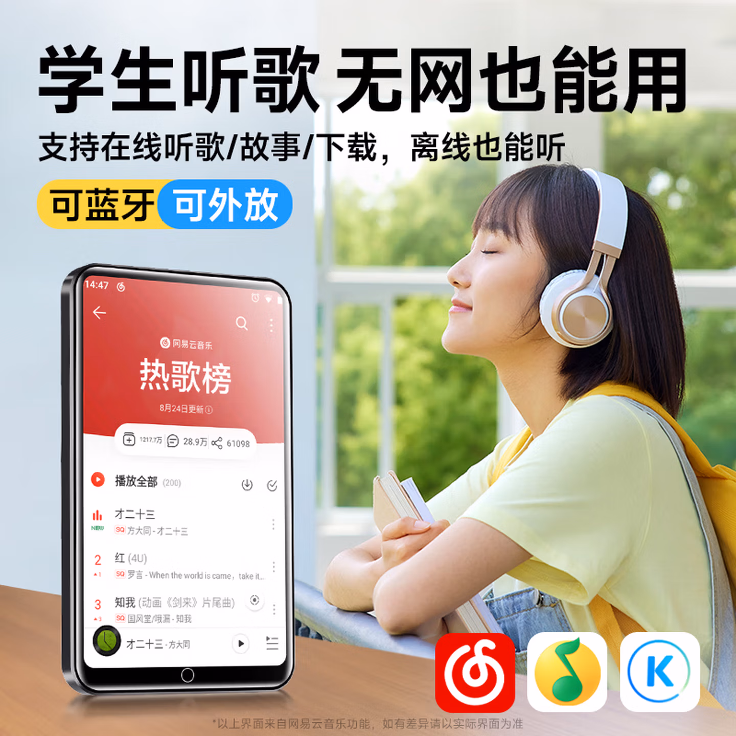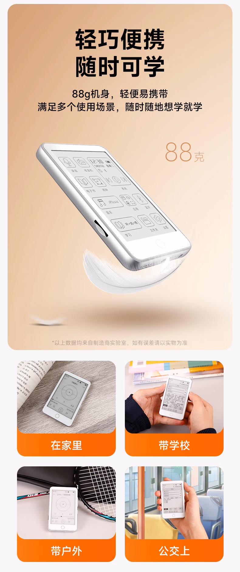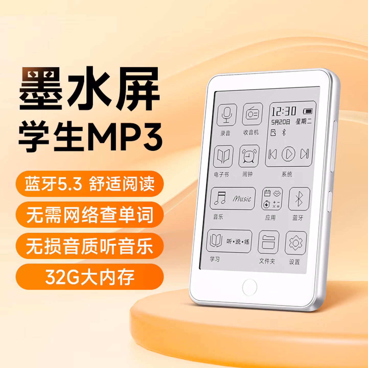 > 梵沐 BF01 mp3/mp4播放器墨水屏 电子书阅读器无损音乐随身听英语 电纸书 32G内存 蓝牙外放 夜读版