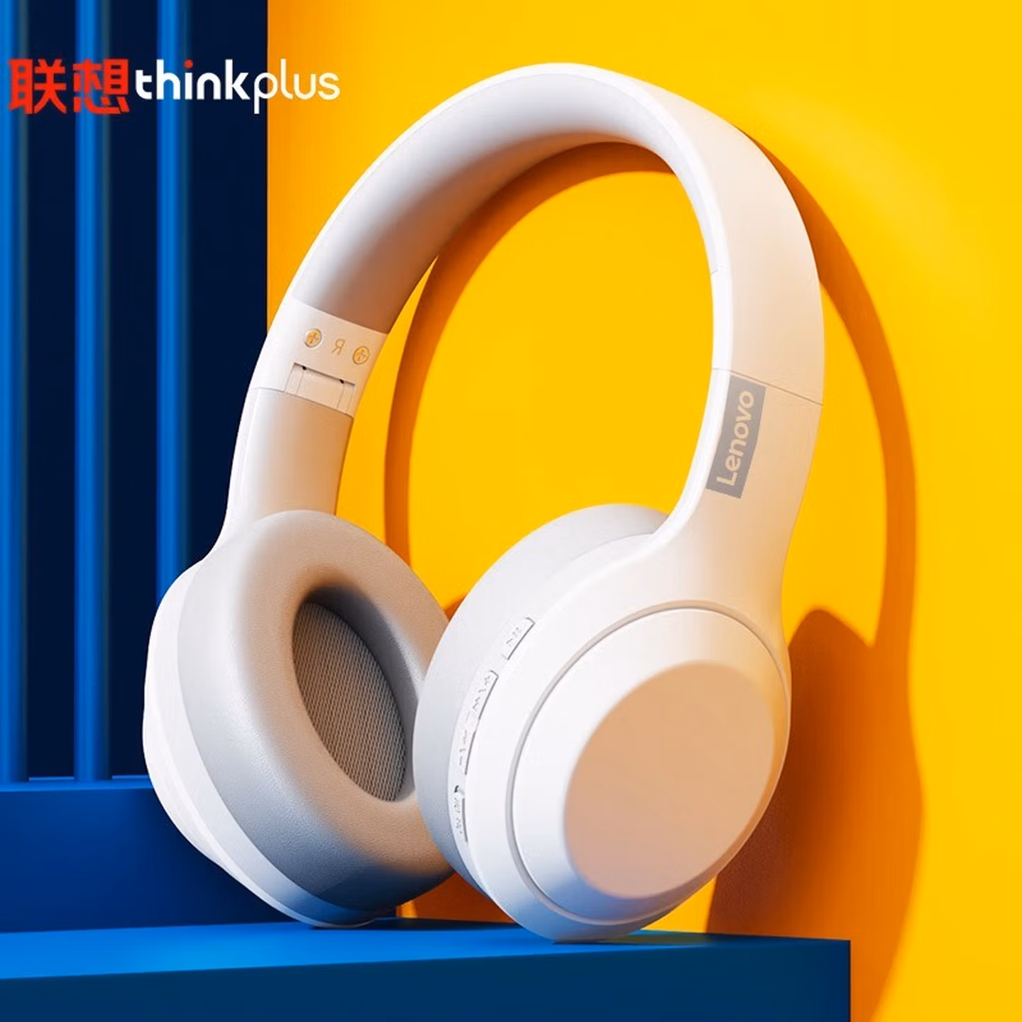 > 联想(Lenovo)th10蓝牙耳机头戴式带麦无线电竞游戏高音质重低音运动降噪耳机超长续航适用苹果安卓手机蓝牙耳机 米色【TH10蓝牙耳机】头戴式