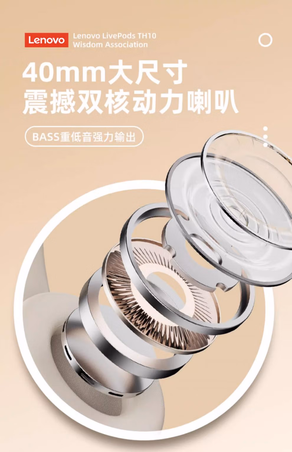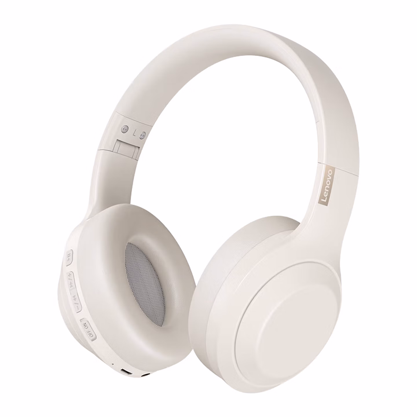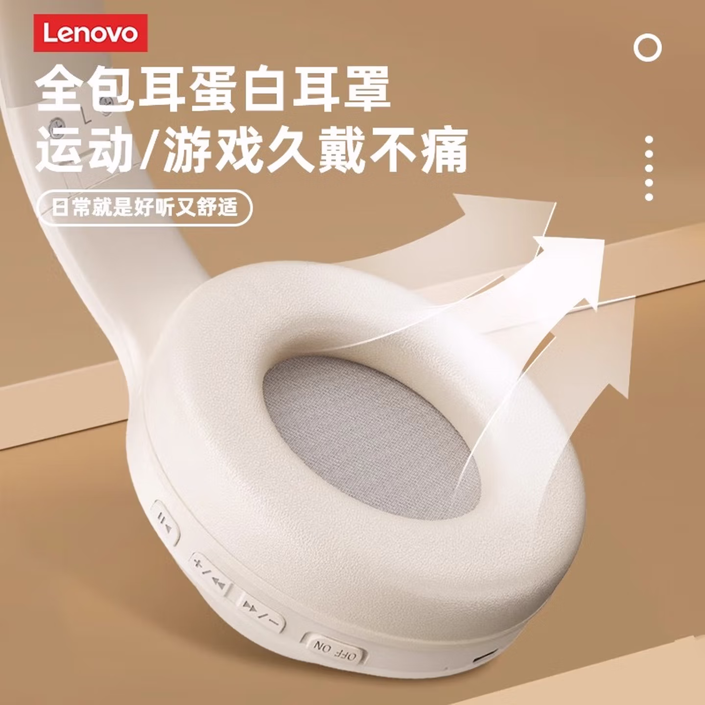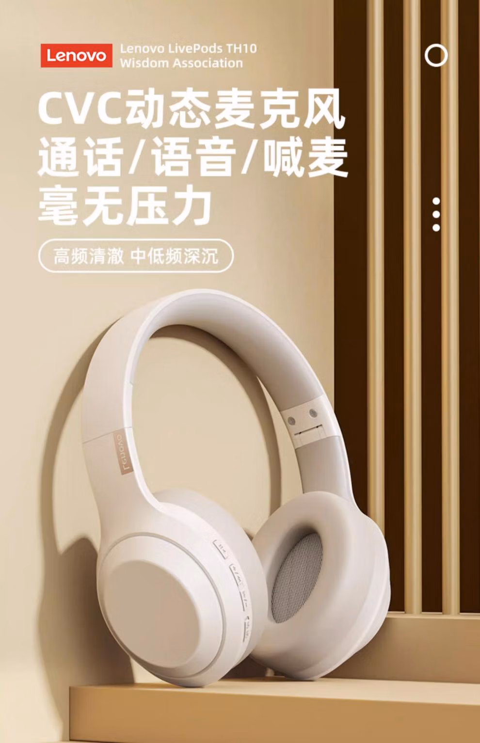 > 联想(Lenovo)头戴式ANC主动降噪蓝牙耳机无线音乐网课 游戏电竞电脑耳麦【蓝牙有线两用】thinkplus TH40白灰色