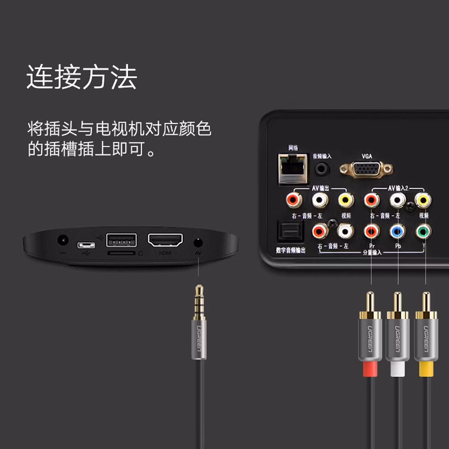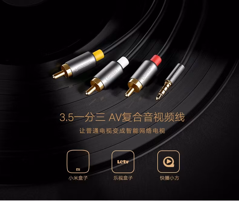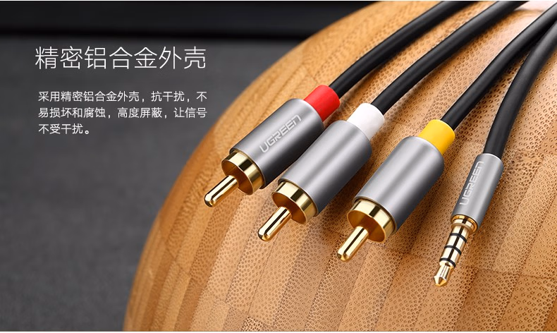 > 绿联(UGREEN)AV线 复合音视频连接线 3.5mm音频线一分三红白黄转接线 适用小米机顶盒子接电视 1.5米 20894
