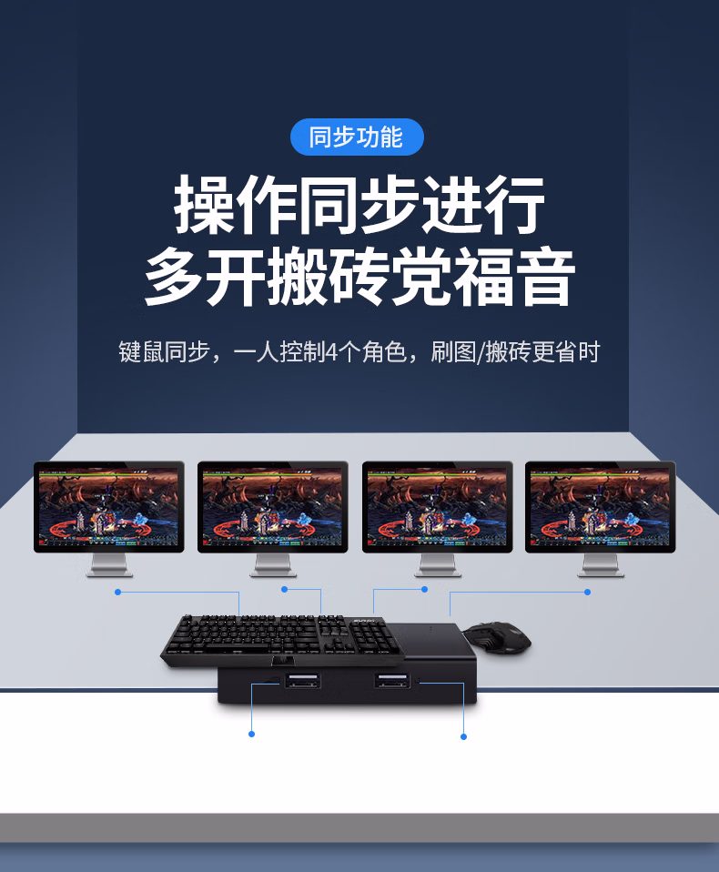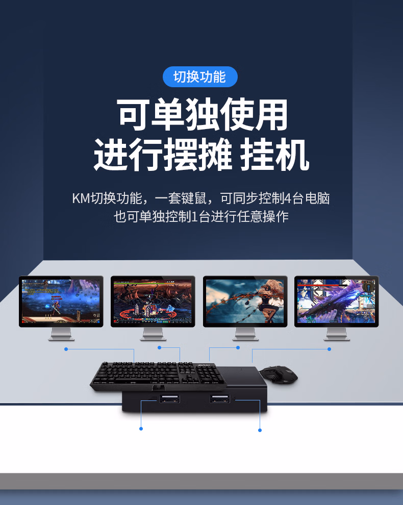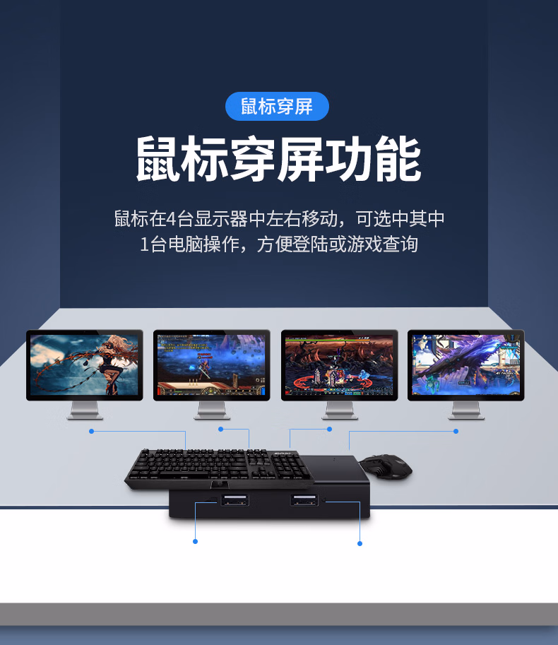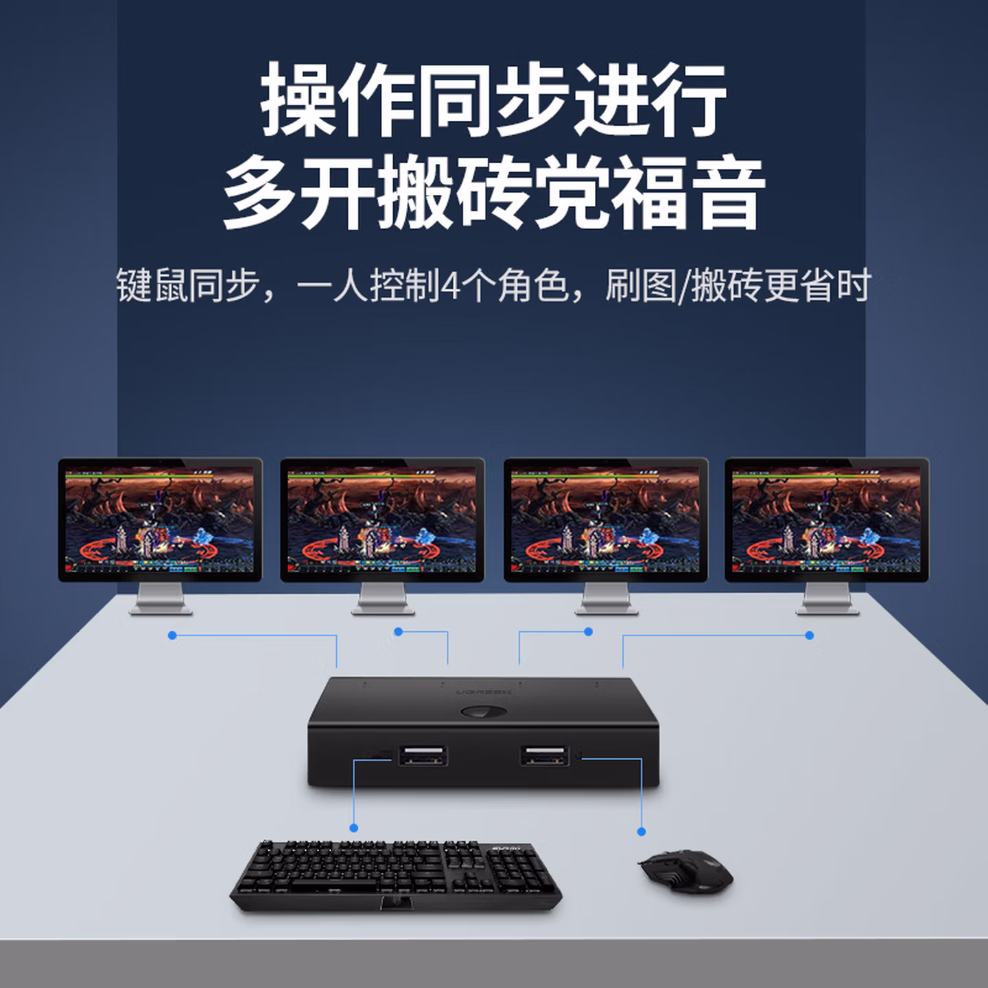 > 绿联USB同步器一进四出 键盘鼠标接四台电脑同步控制器 1控4分屏器KVM切换器60101