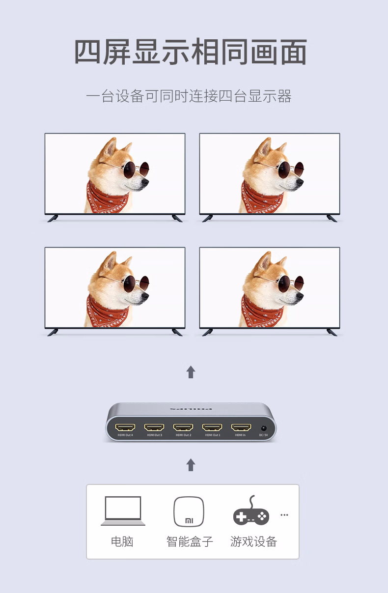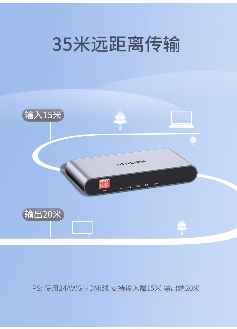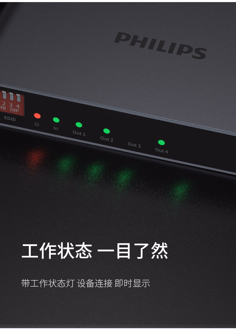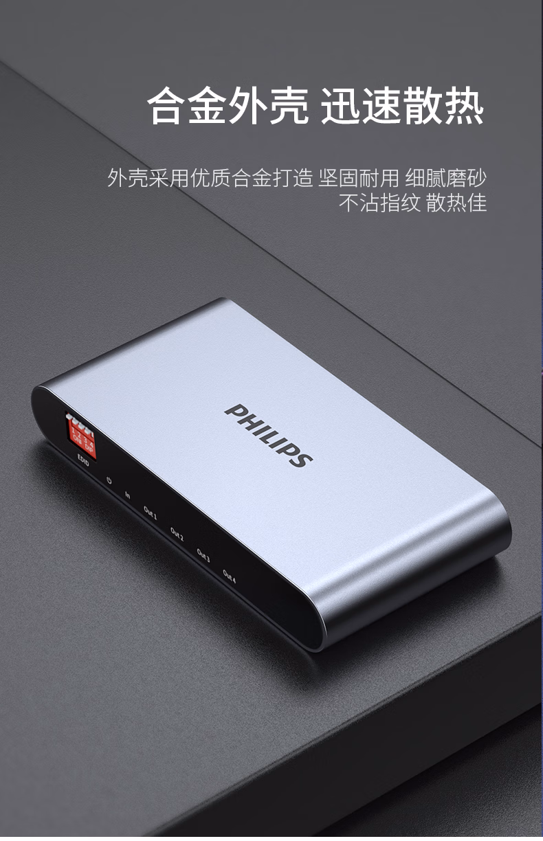 飞利浦 HDMI分配器1进4出/2出4K数字高清视频分屏器笔记本电脑电视盒子接显示器投影仪一分二/四 一进二出分配器(4K60Hz)