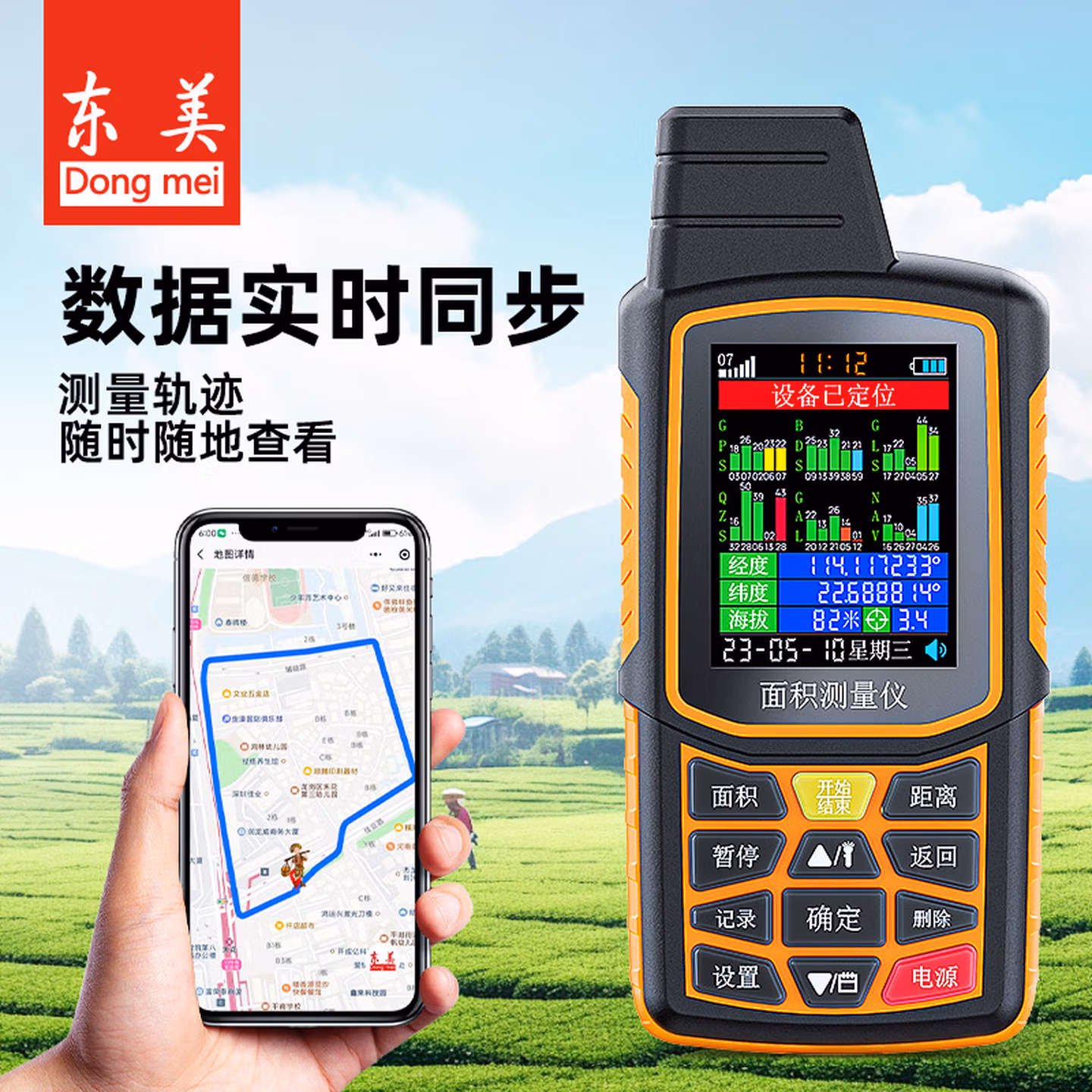 > 东美(Dongmei)测亩仪高精度土地面积测量仪GPS定位蓝牙车载农田丈量北斗六星