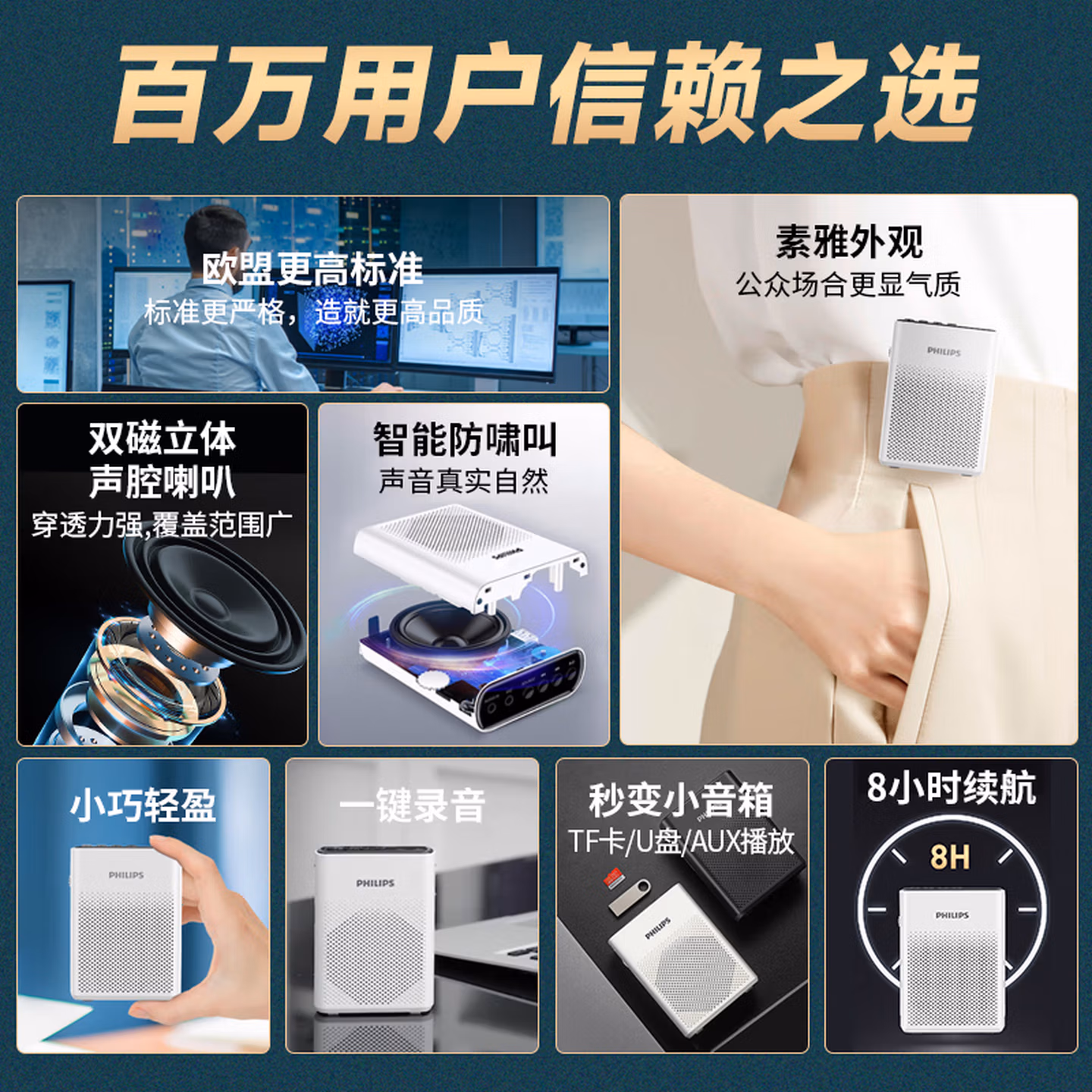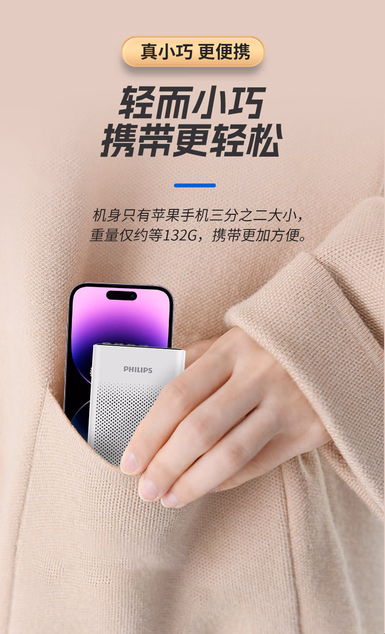 > 飞利浦(PHILIPS)SBM200 小蜜蜂扩音器便携插卡音箱会议扬声器麦克风喇叭喊话教师导游专用教学讲课户外小巧迷你黑