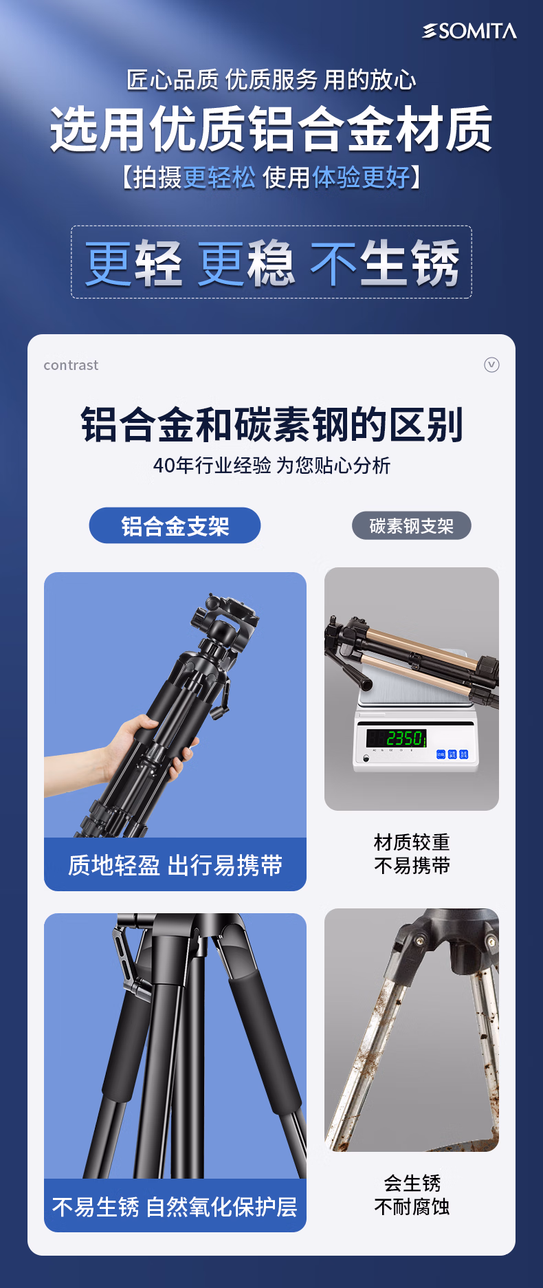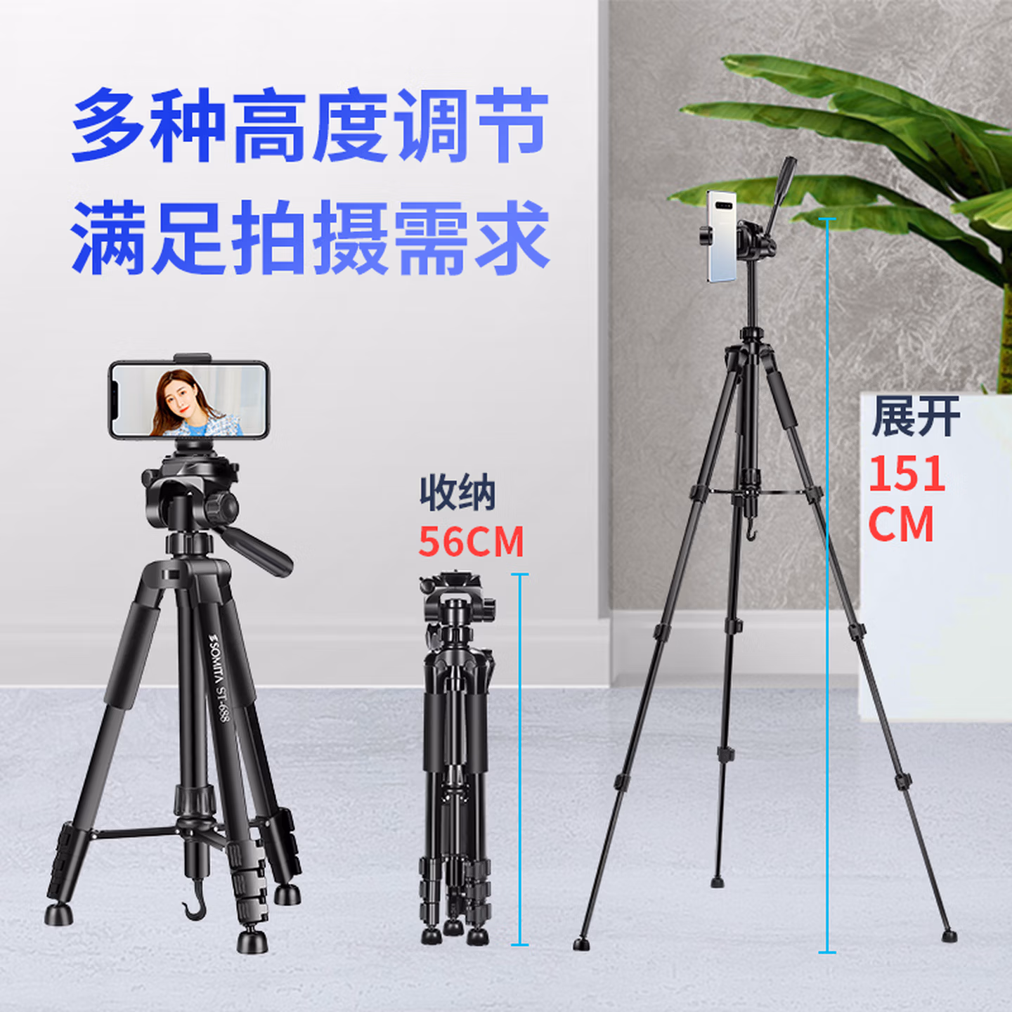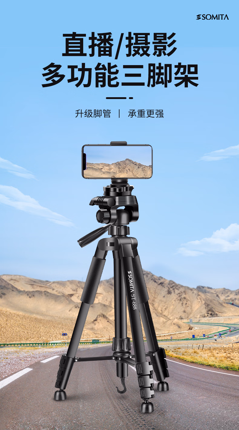> SOMITA 闪拓ST-688三脚架相机支架手机摄影支架单反三脚架云台便携三角架手机网红直播支架