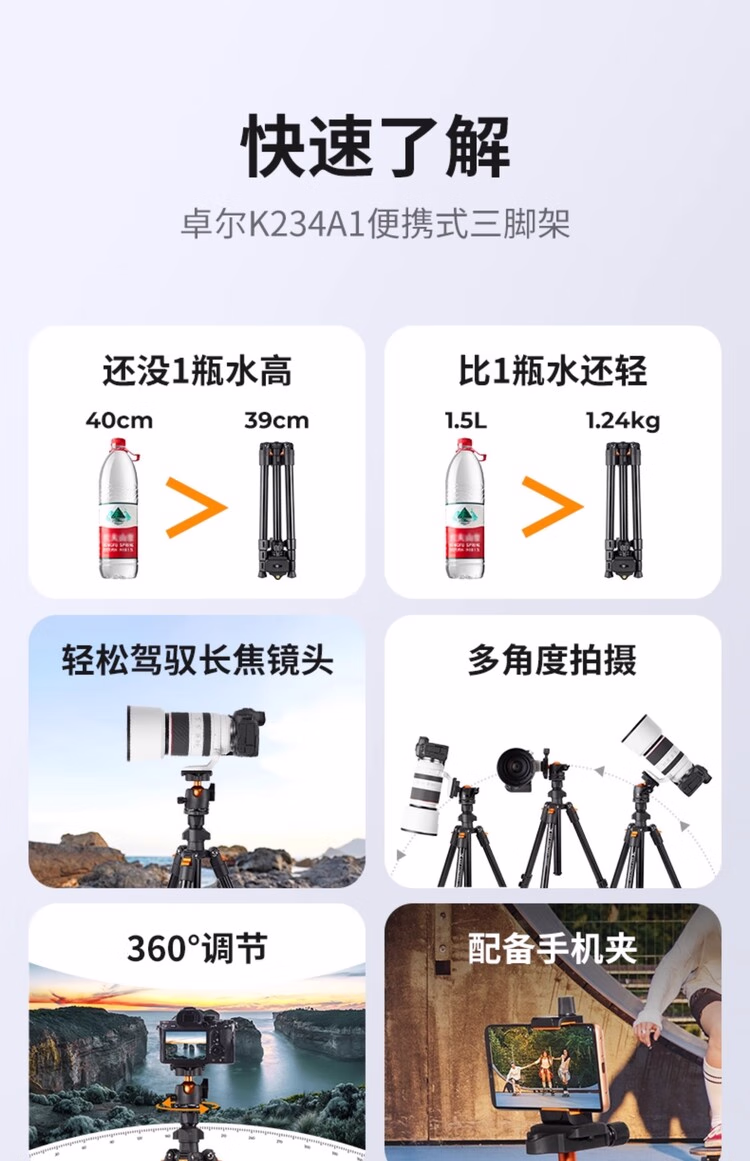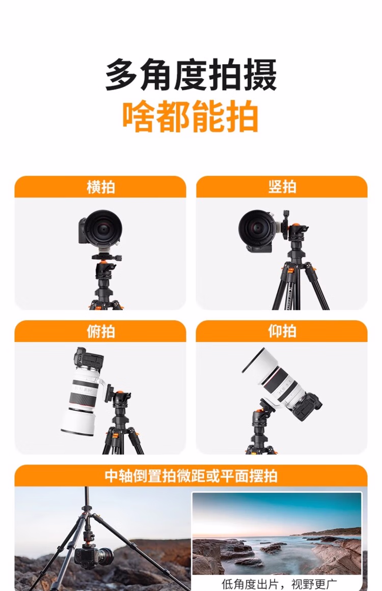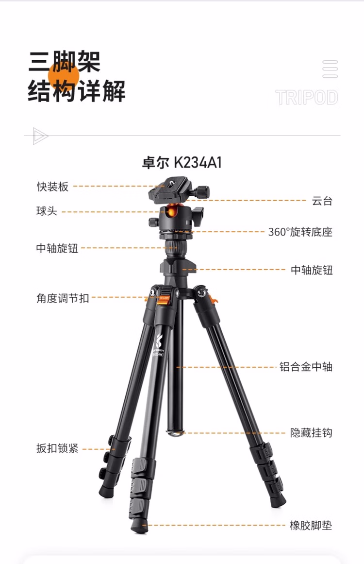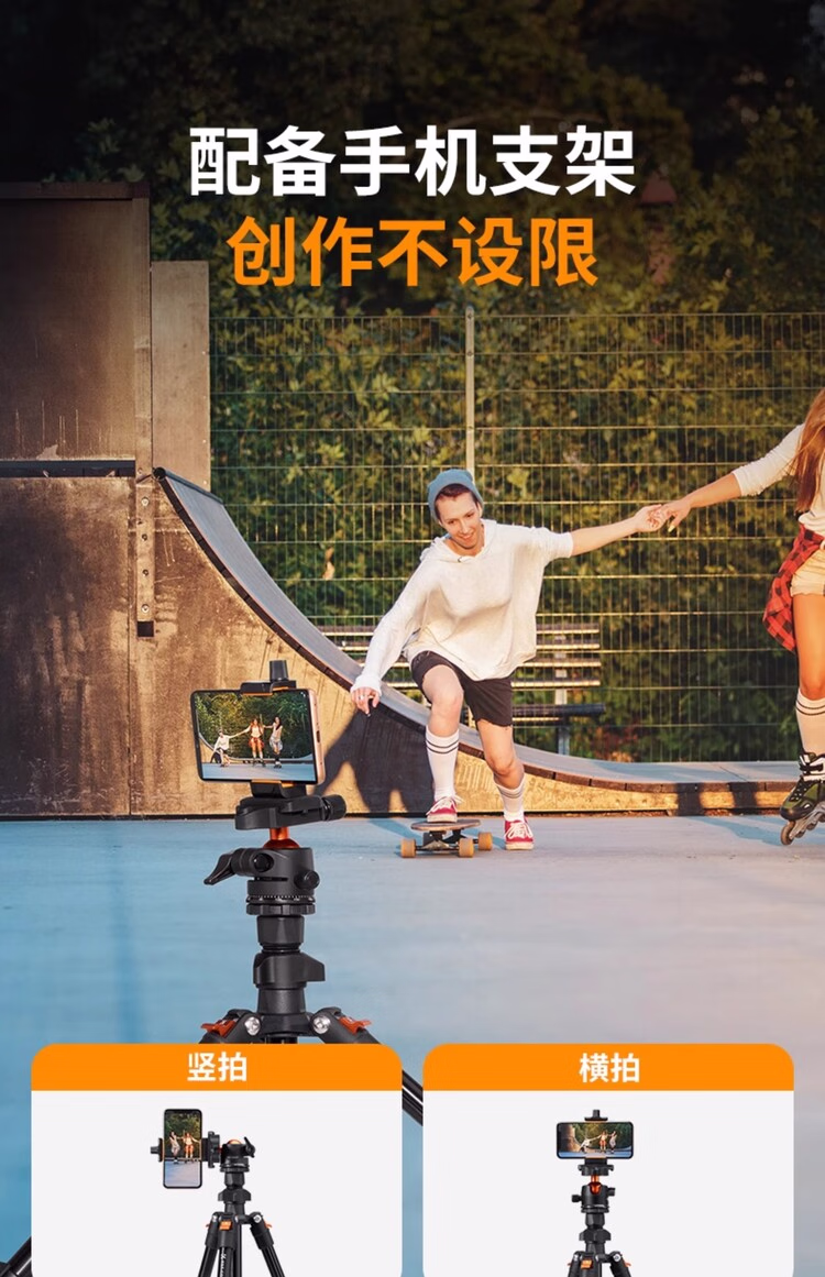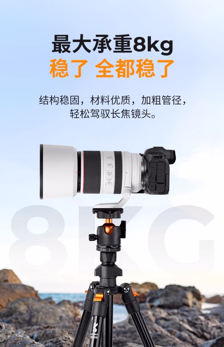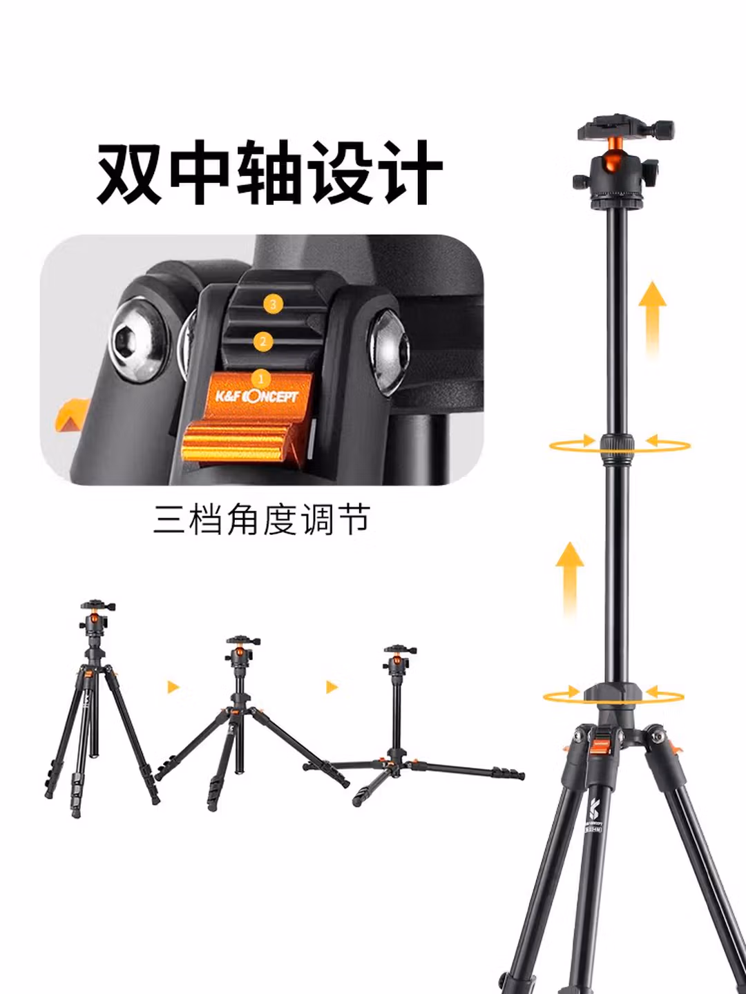 > 卓尔KFCONCEPT相机三脚架手机直播支架专业微单便携式单反三角架云台 【常规版】1.63米专业级 铝合金 云台承重升级
