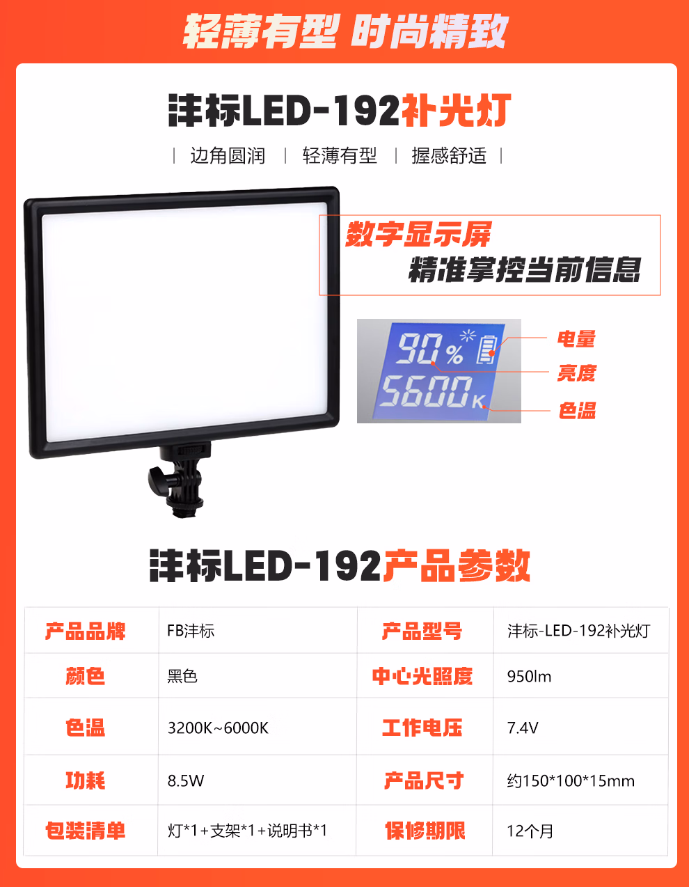 佳能(Canon) 原装闪光灯适用5D4 6D2 7DII 90D 850D 200D M6II R7 R3 R5 R6 R6II R10 R8 RP 80D 800D 沣标FB-LED-192补光灯