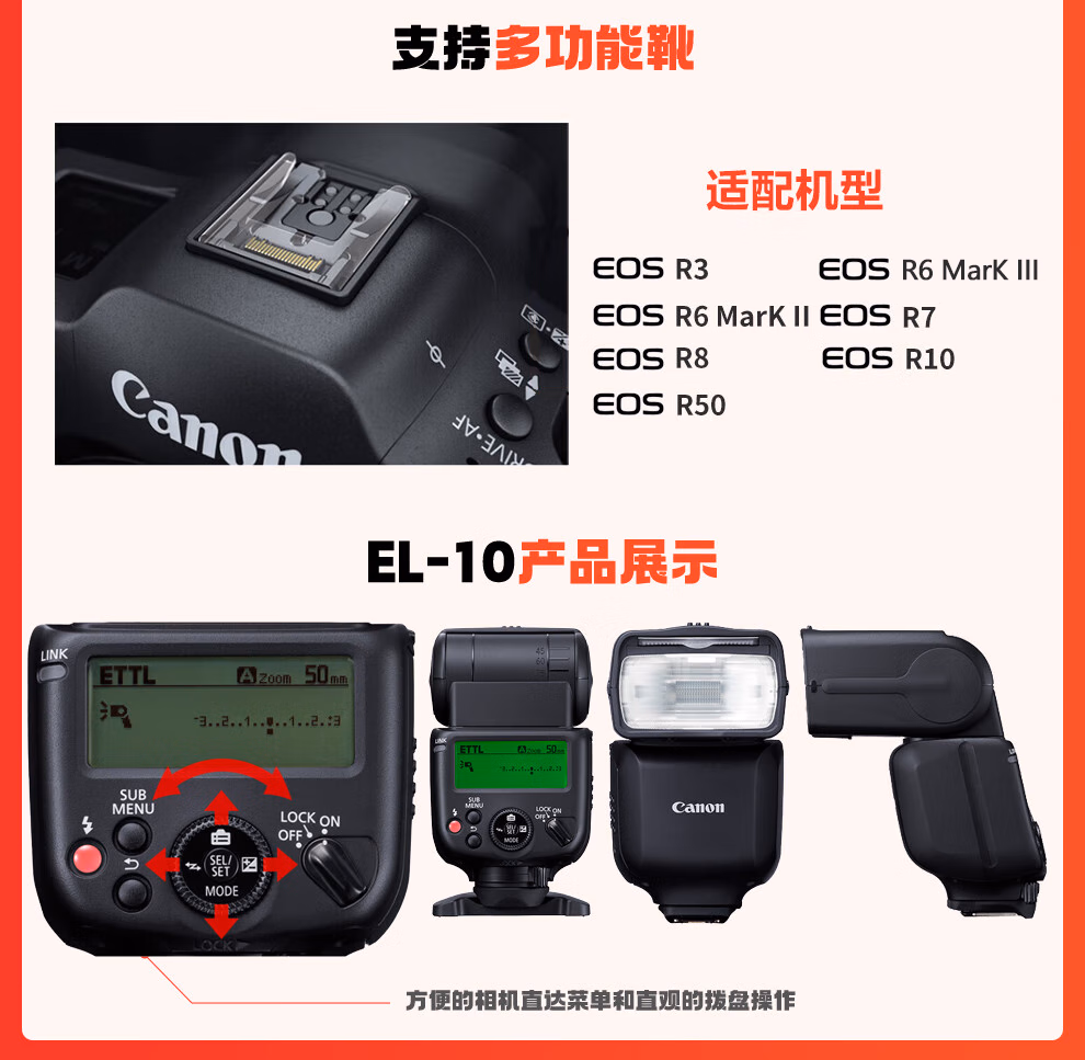 > 佳能(Canon) 原装闪光灯适用5D4 6D2 7DII 90D 850D 200D M6II R7 R3 R5 R6 R6II R10 R8 RP 80D 800D 神牛TT520II闪光灯+电池