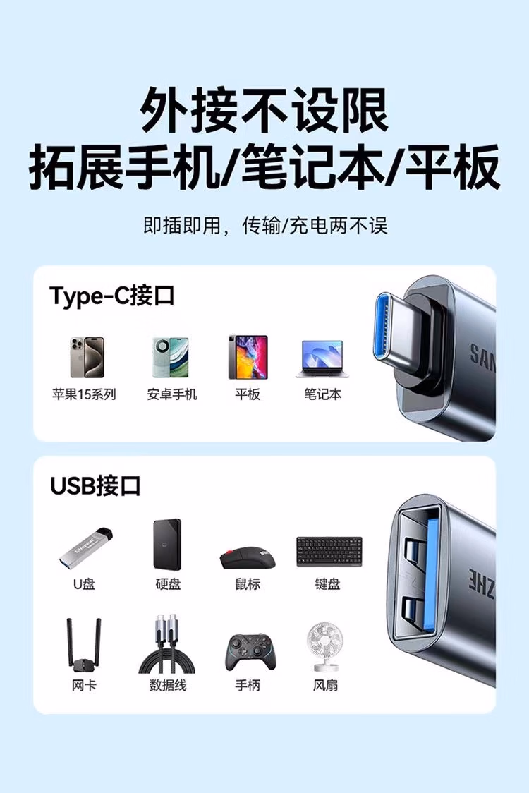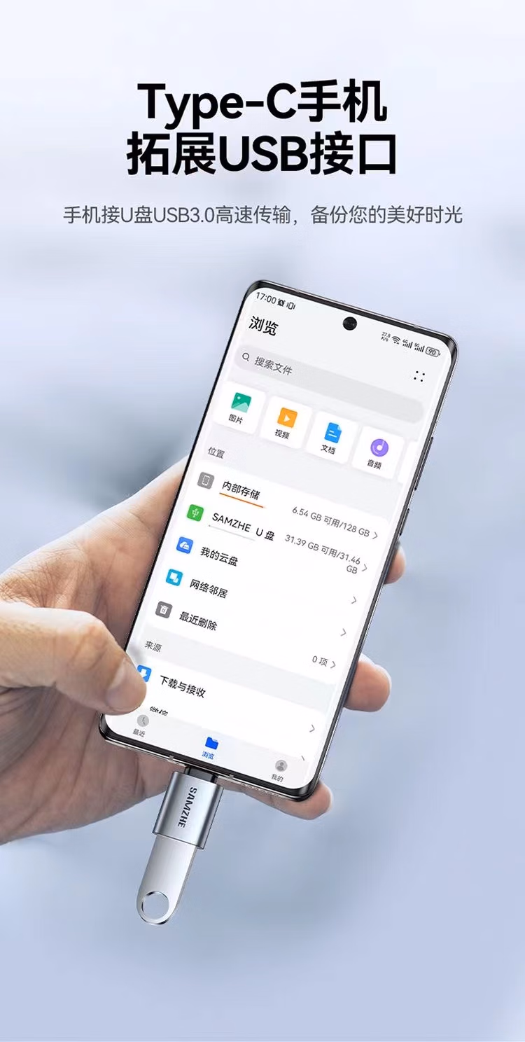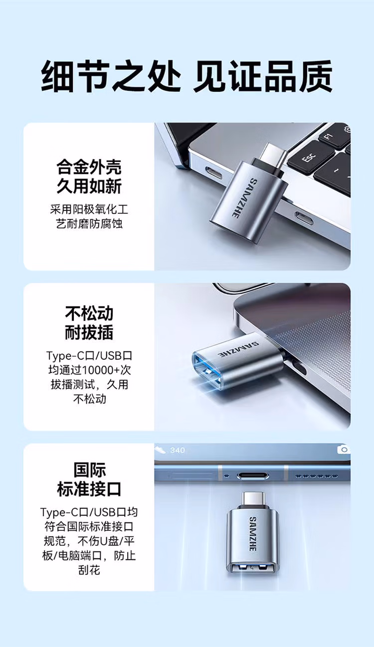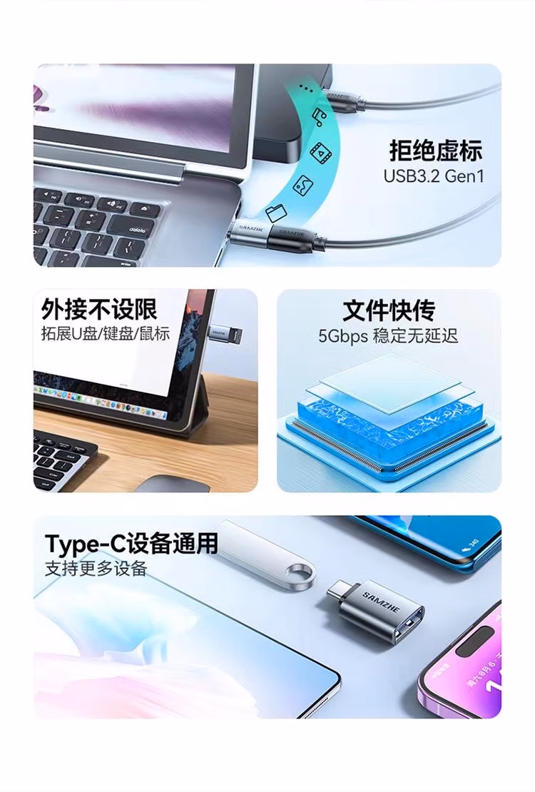 > 山泽(SAMZHE)CL91山泽 Type-C转接头USB3.0安卓手机接U盘OTG数据线 苹果笔记本拓展USB-C扩展坞车载转换器头通用华为电脑CL91(Type-C转USB3.0【迷你便携】)