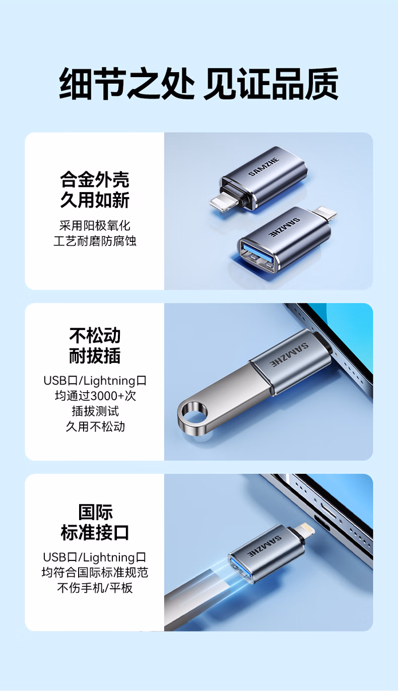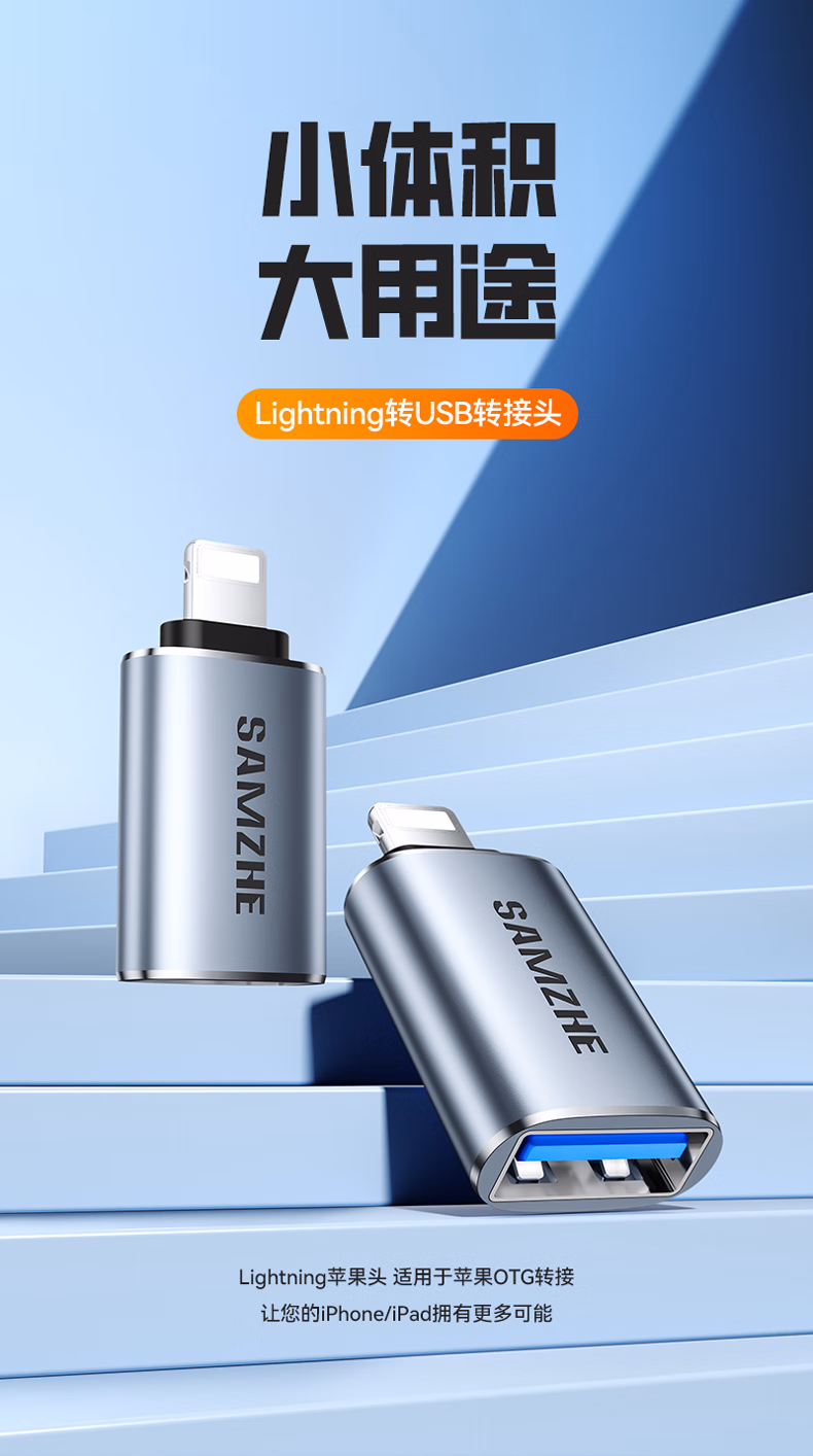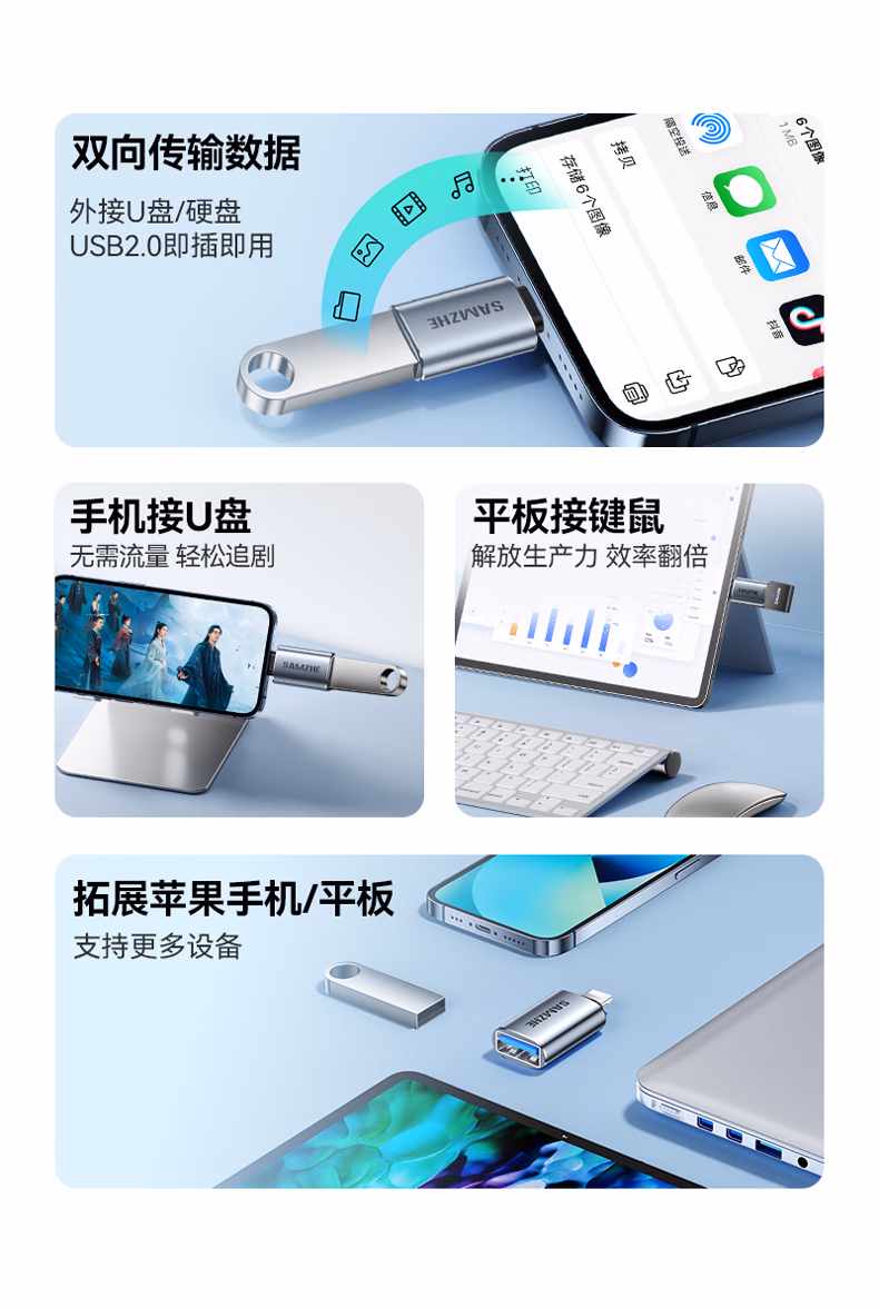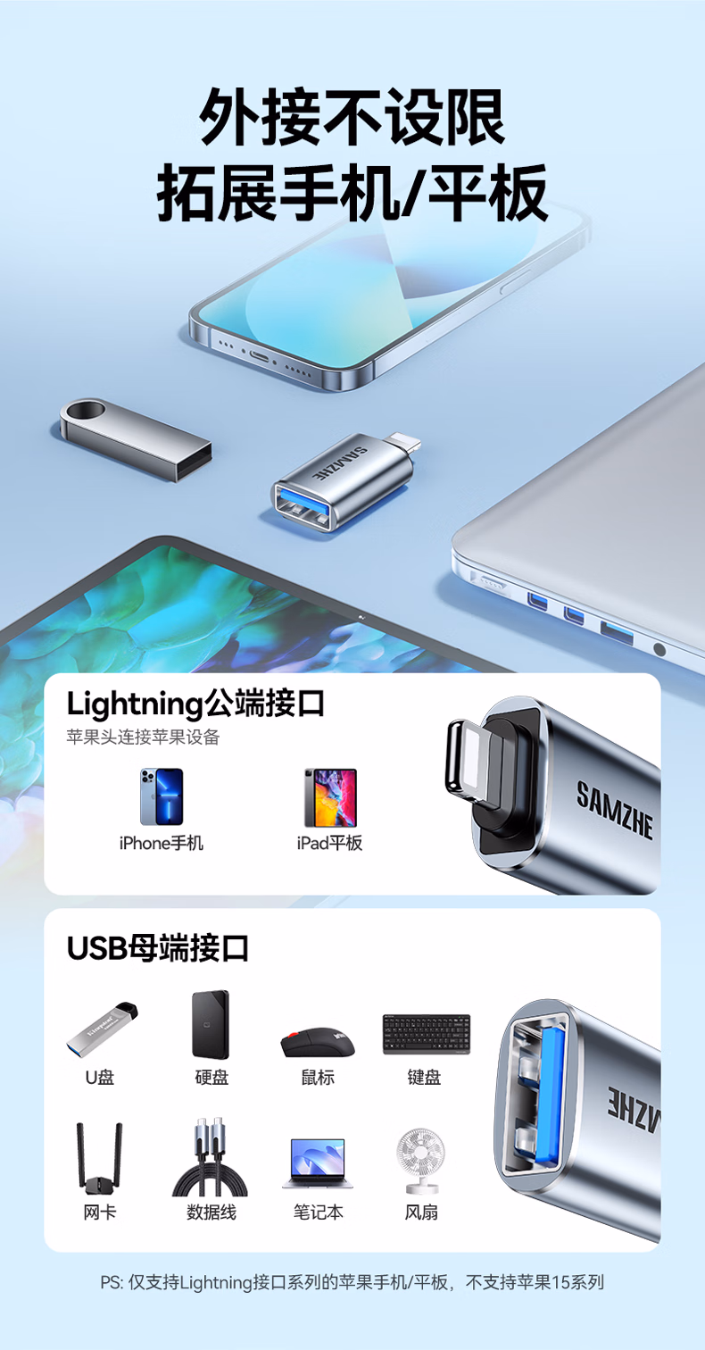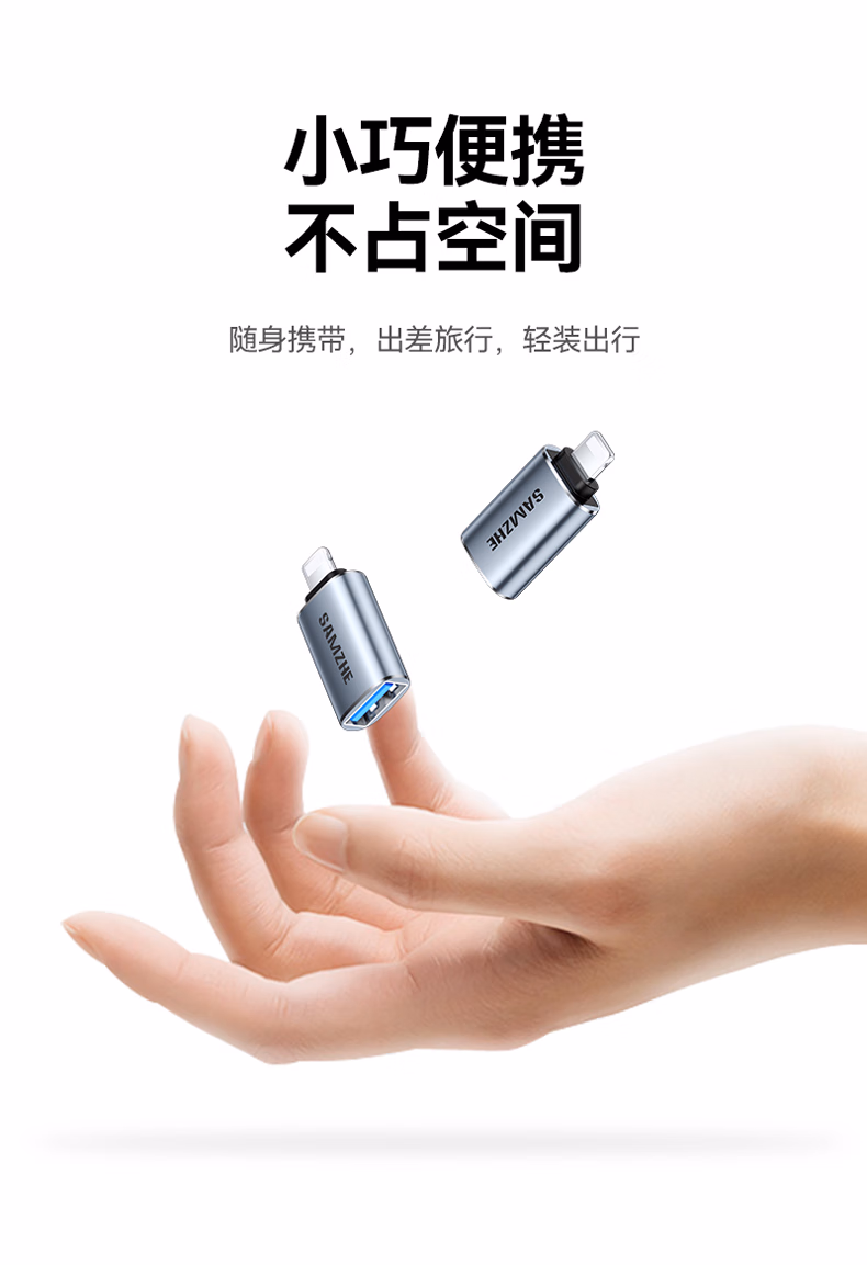 山泽 苹果OTG转接头Lightning转USB母转换器外接U盘ipad平板iPhone手机数据充电转换头键鼠读卡器 LA21