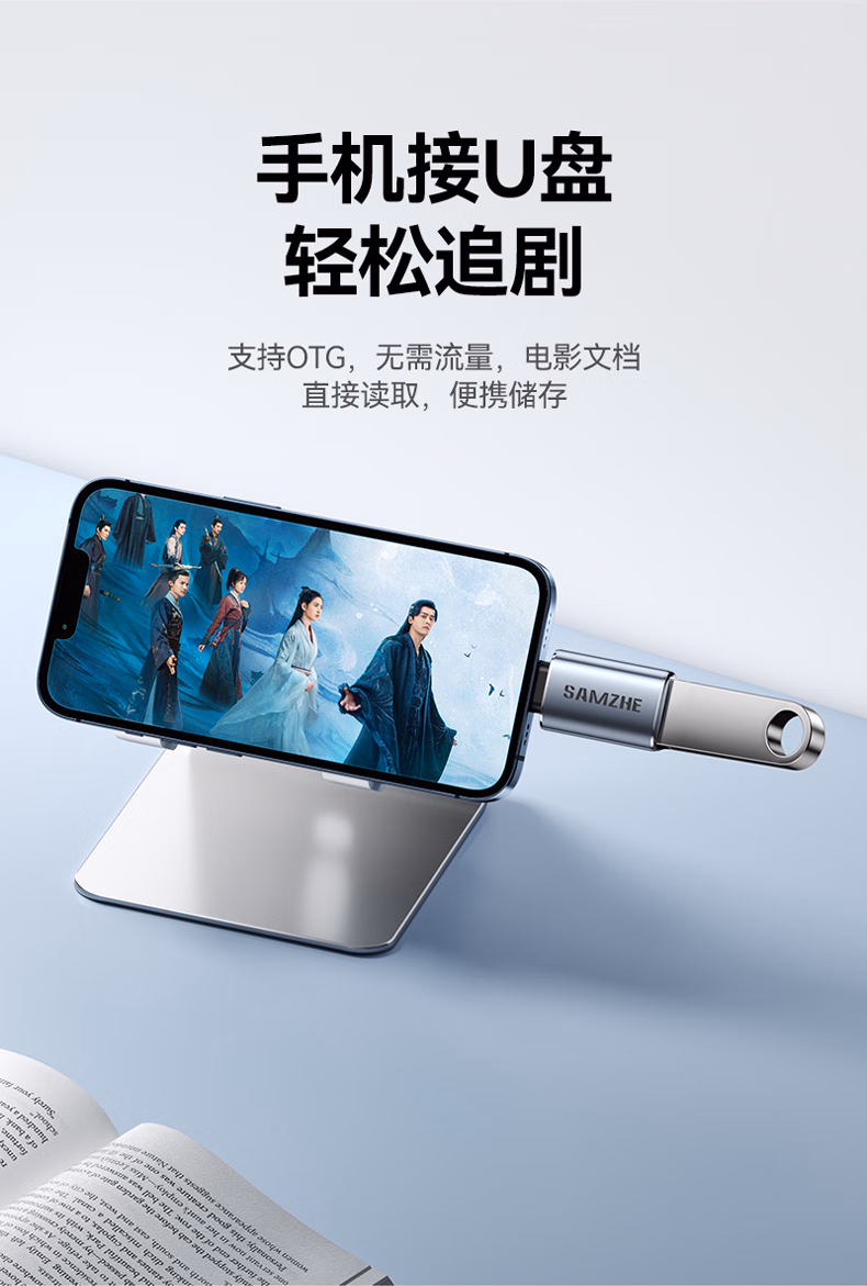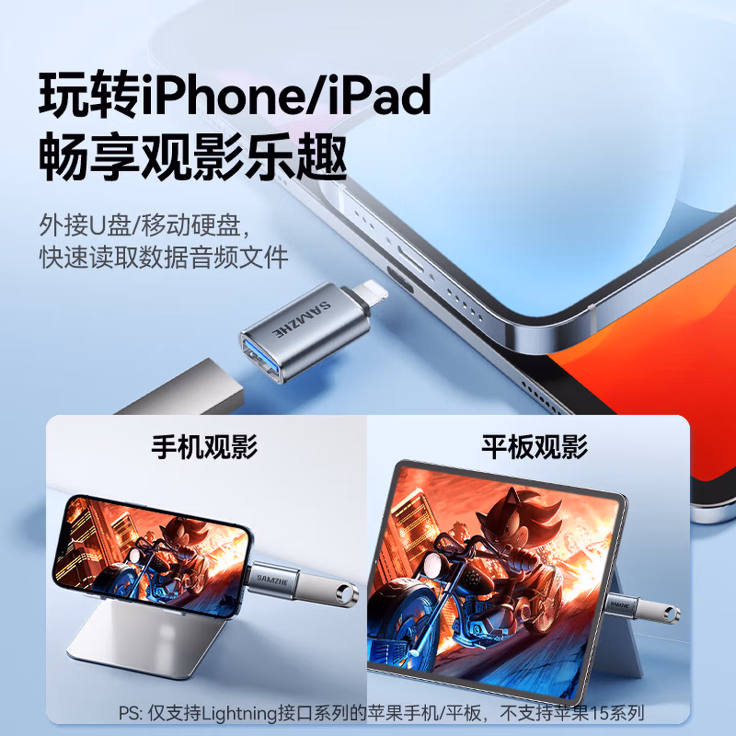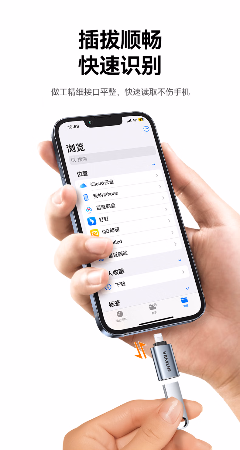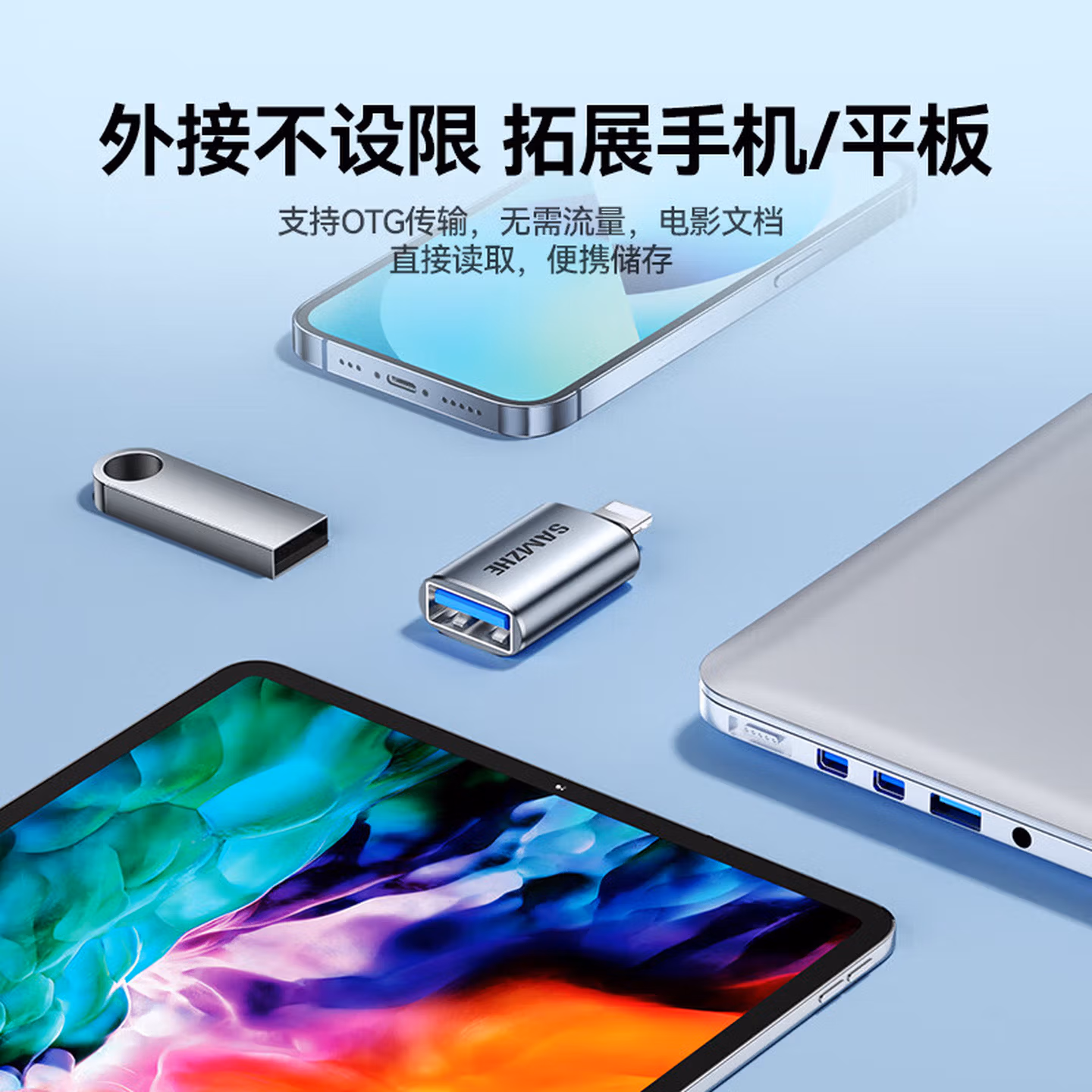 山泽 苹果OTG转接头Lightning转USB母转换器外接U盘ipad平板iPhone手机数据充电转换头键鼠读卡器 LA21
