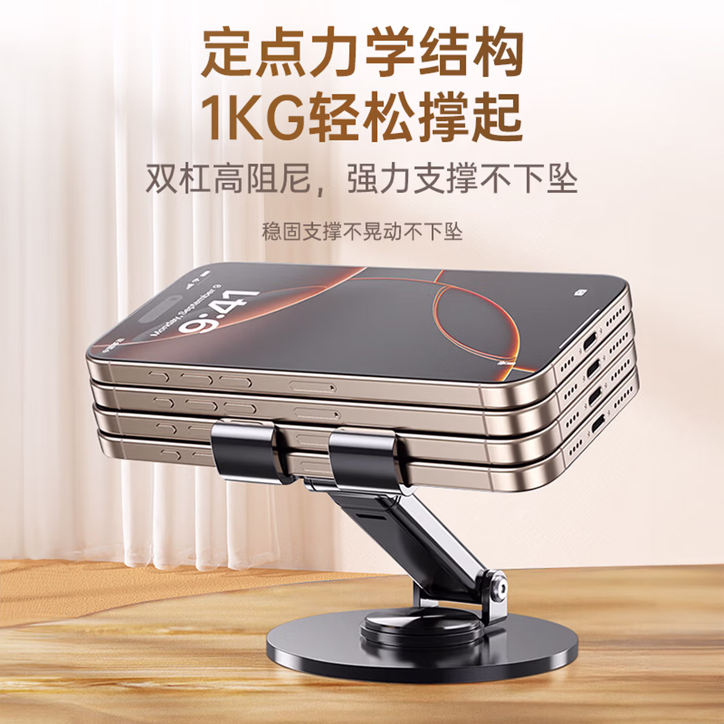 科沃【可升降碳素钢】手机支架桌面ipad平板支架床头懒人支架金属直播追剧多功能折叠便携360°旋转