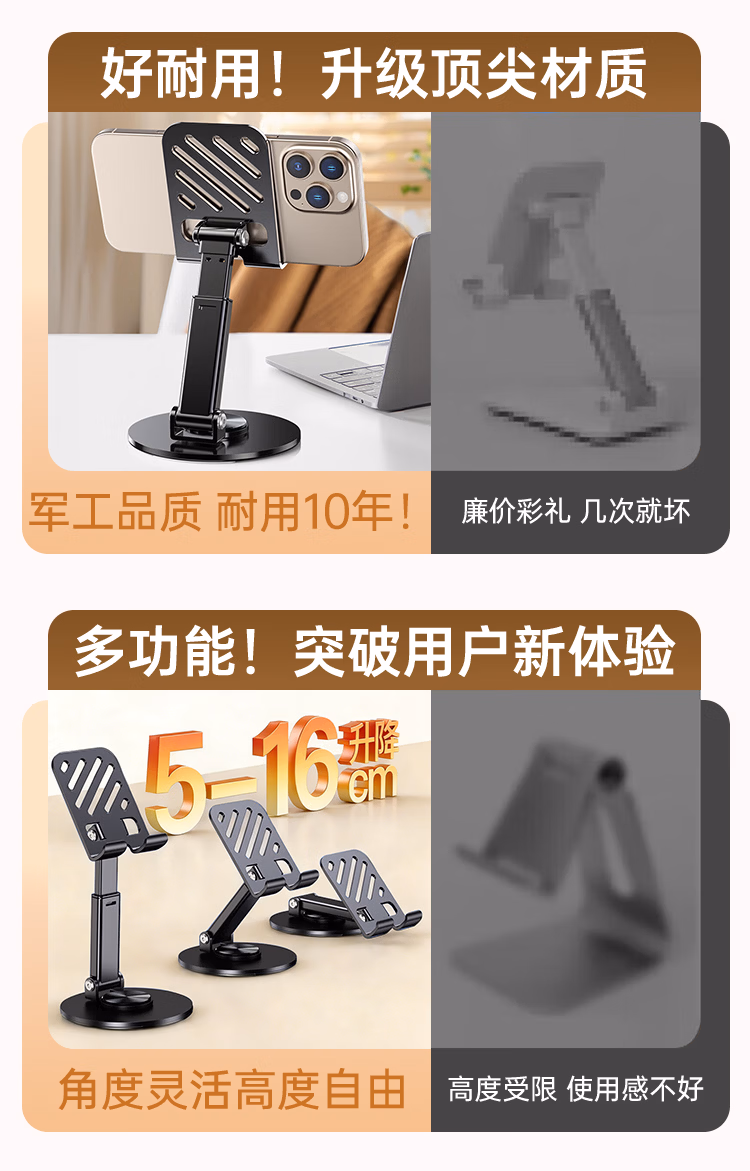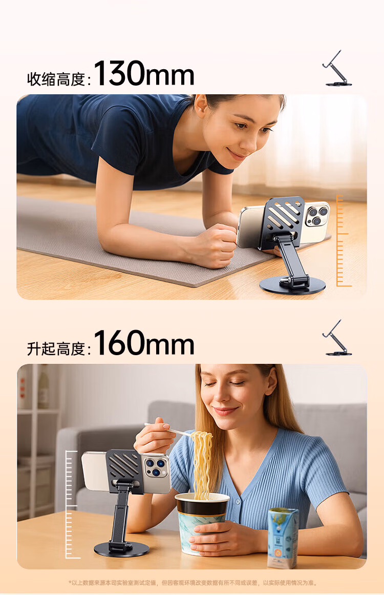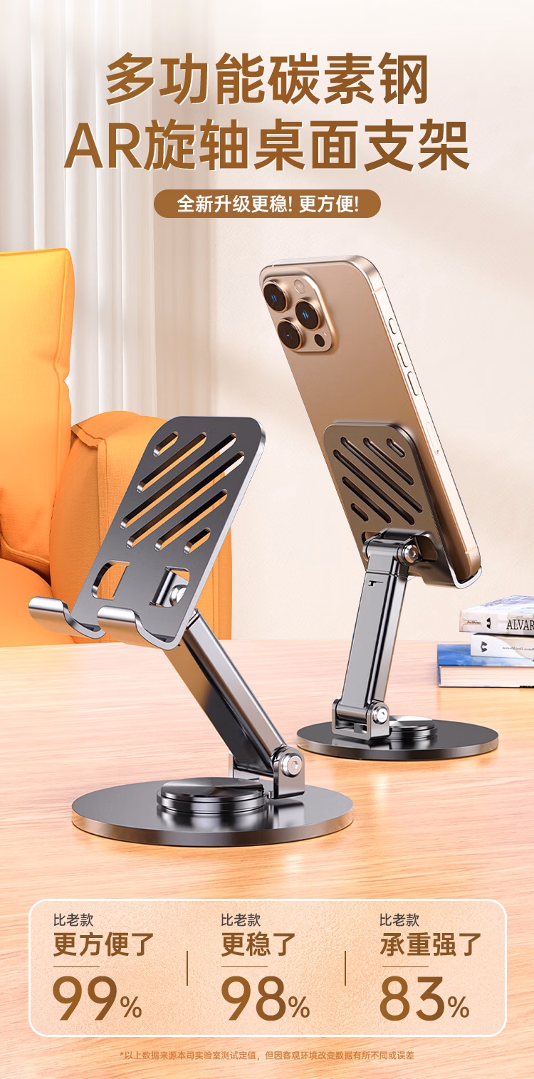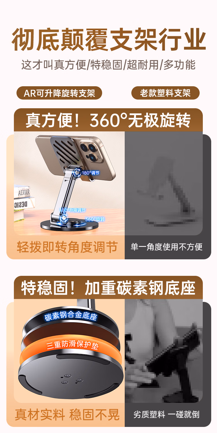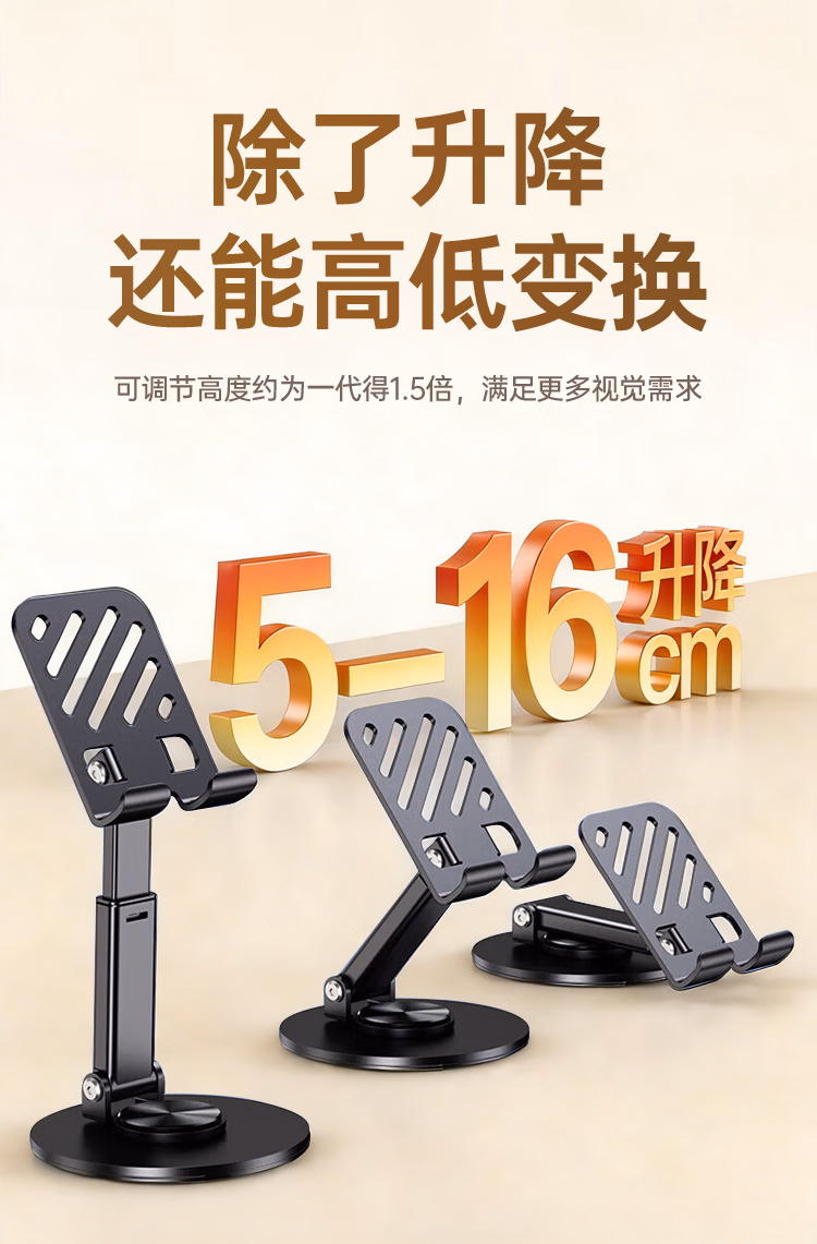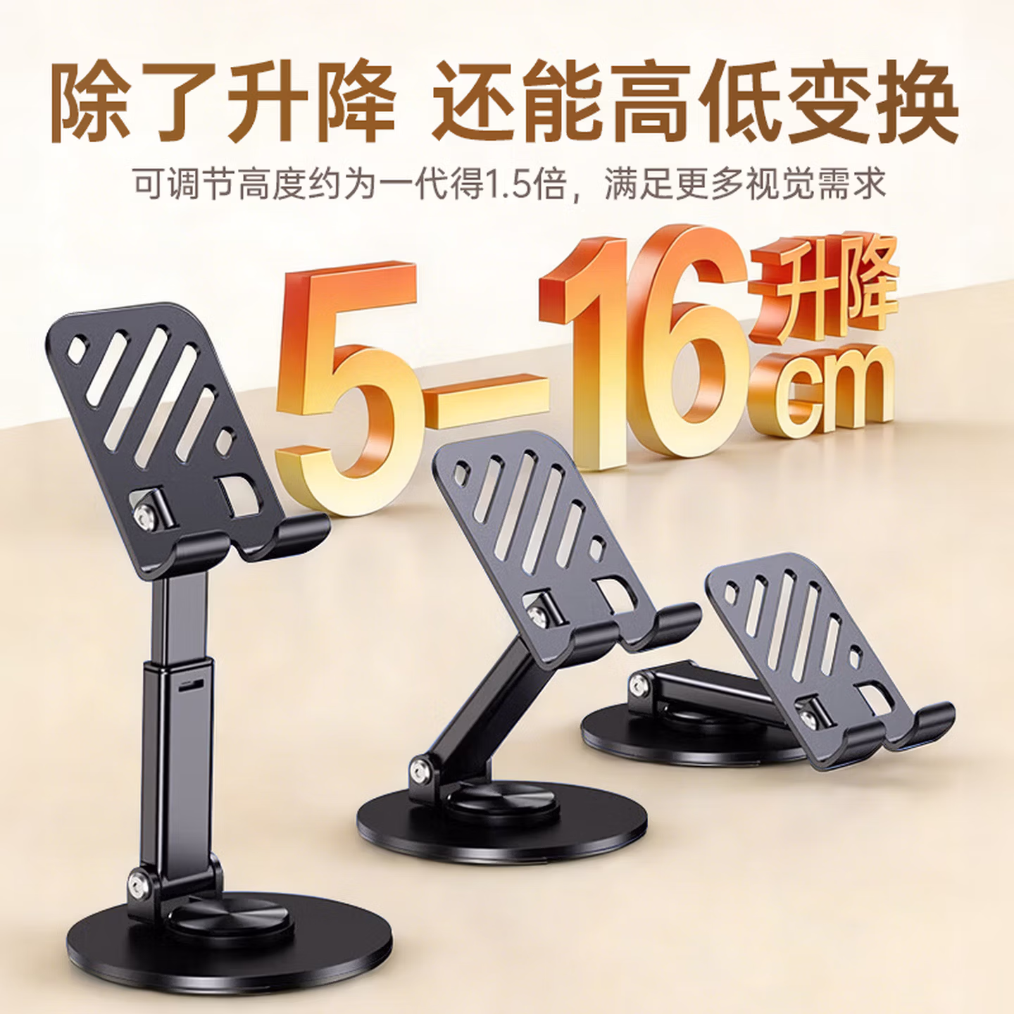 > 科沃【可升降碳素钢】手机支架桌面ipad平板支架床头懒人支架金属直播追剧多功能折叠便携360°旋转