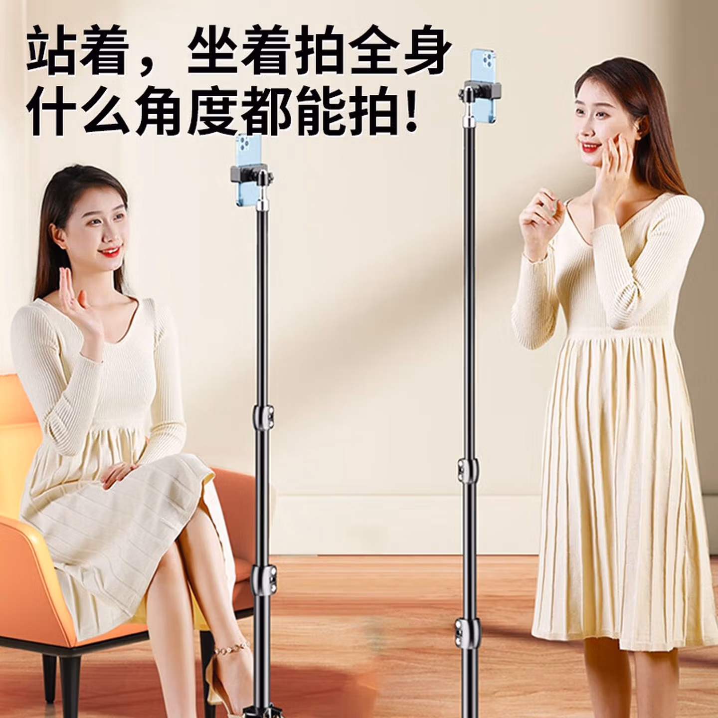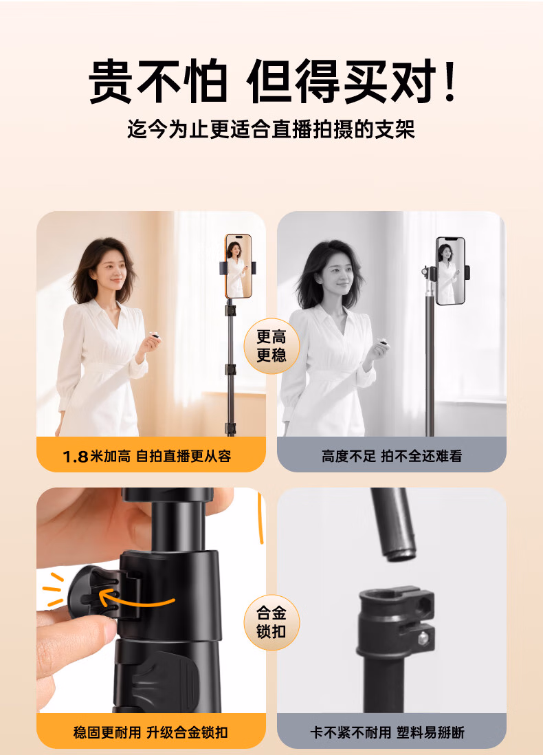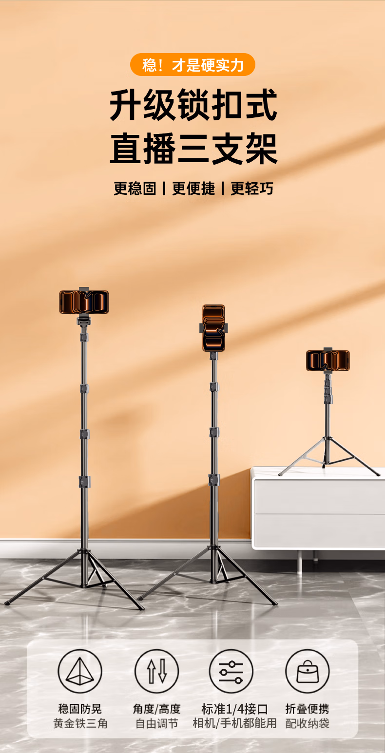 > 科沃【稳固升级2.1米】手机支架落地三脚架直播短视频考试便携户外升降三角折叠支架拍摄拍照自拍神器