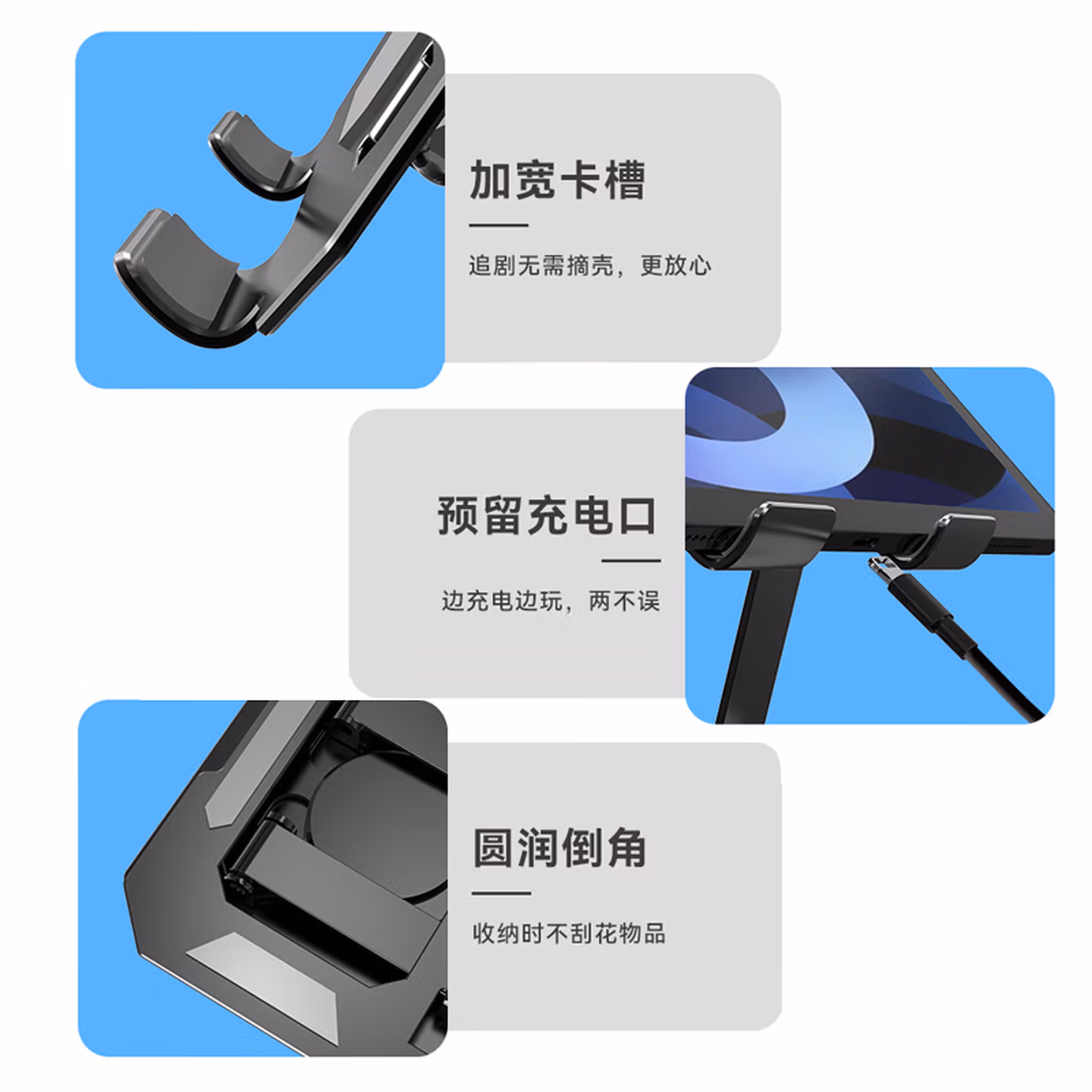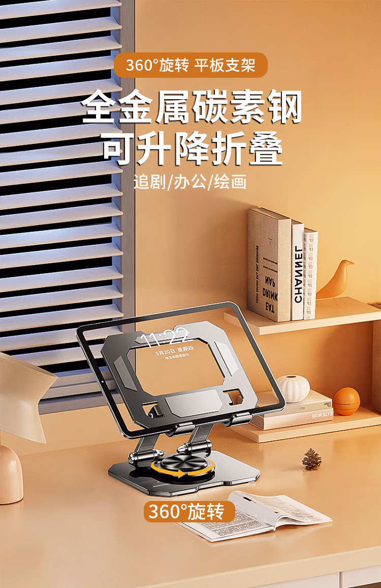BZBC【升级碳素钢】手机支架ipad平板支架懒人桌面支架床头直播追剧多功能小巧折叠便携360°旋转款