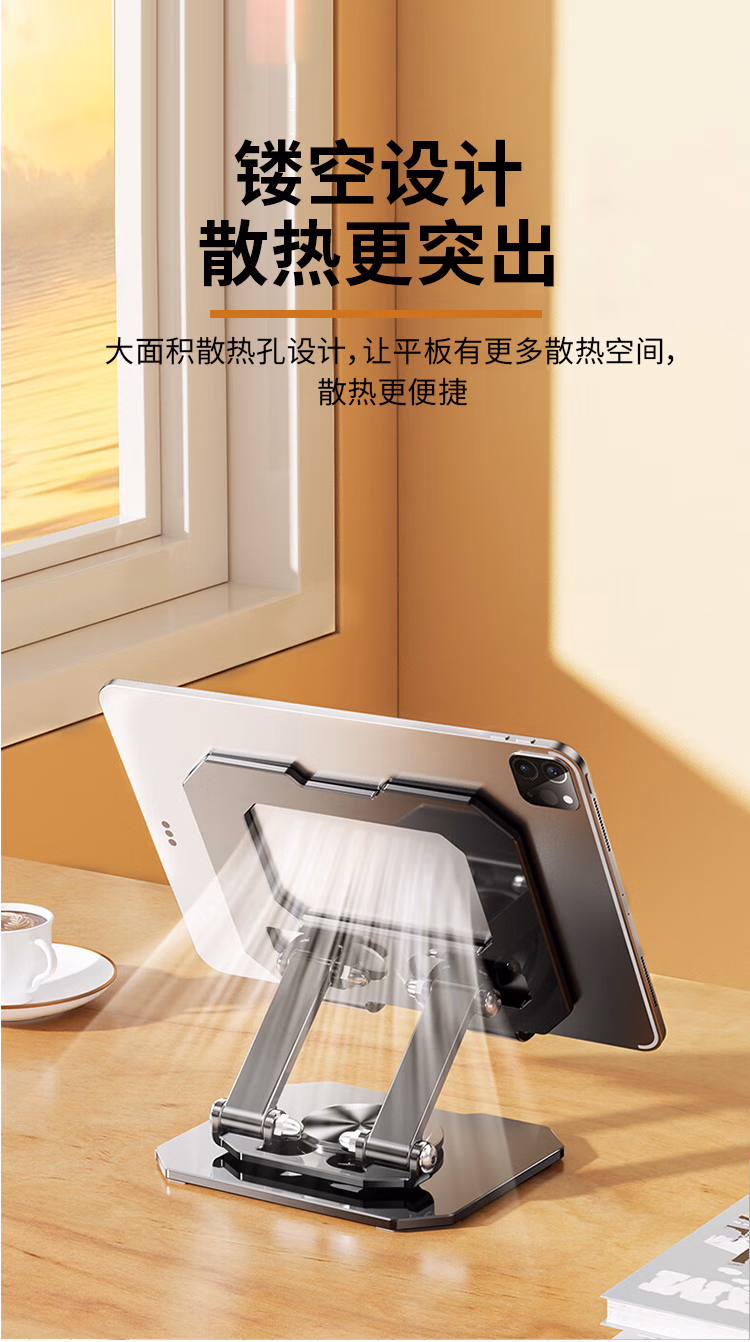 > BZBC【升级碳素钢】手机支架ipad平板支架懒人桌面支架床头直播追剧多功能小巧折叠便携360°旋转款