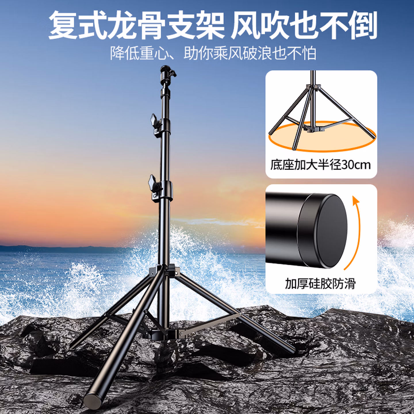 科润乐【1.7火淬钢】手机支架落地自拍杆三脚架直播网课艺考立式三角折叠支架拍照录像视频升降支架