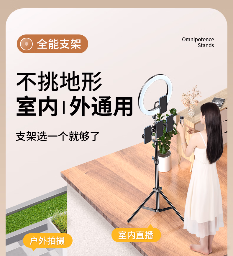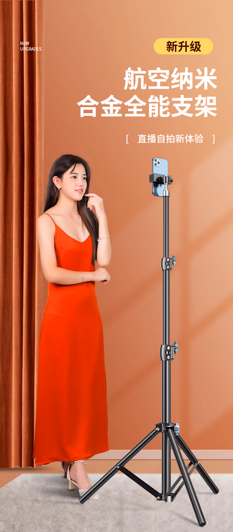 > 科润乐【1.7火淬钢】手机支架落地自拍杆三脚架直播网课艺考立式三角折叠支架拍照录像视频升降支架