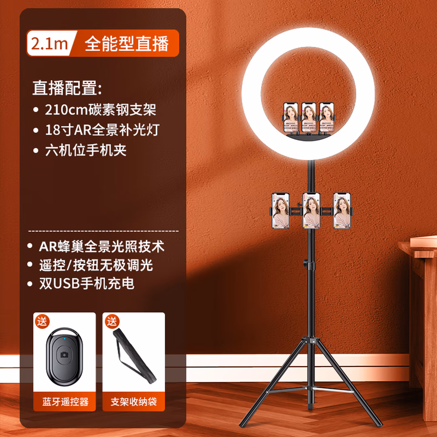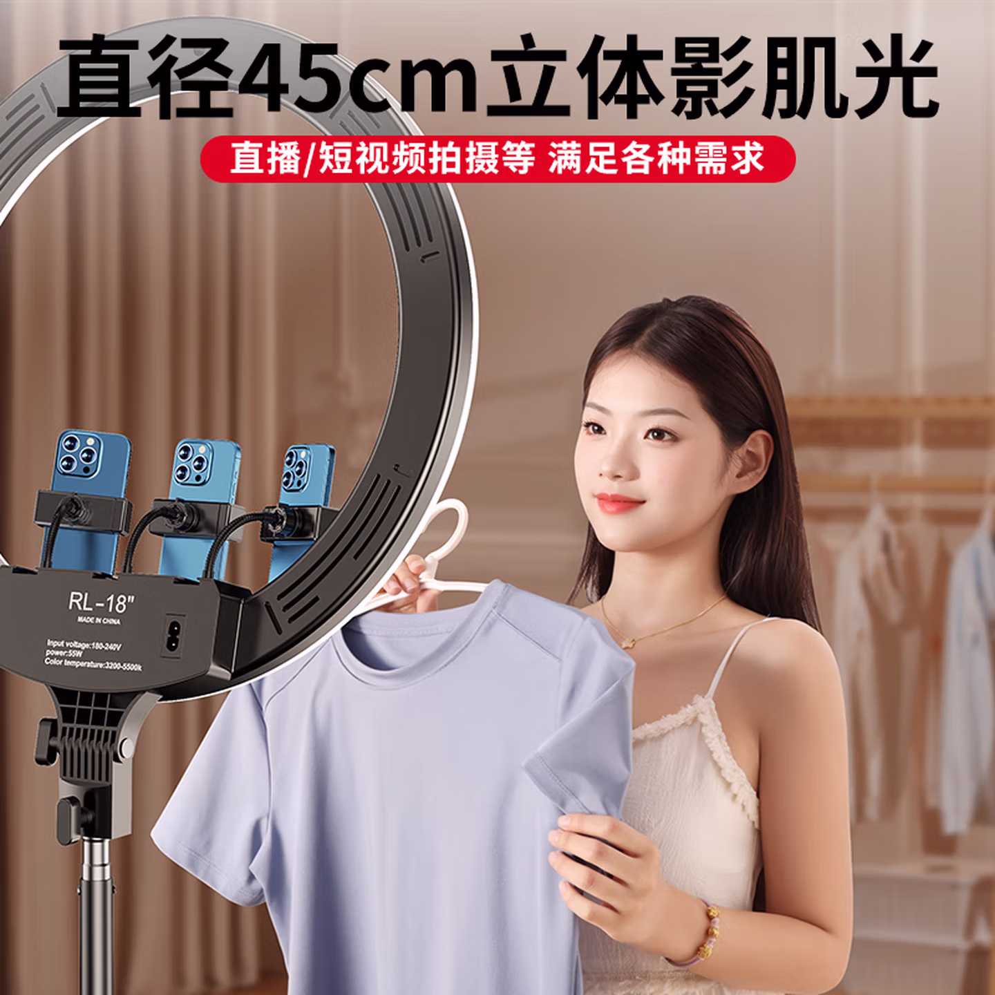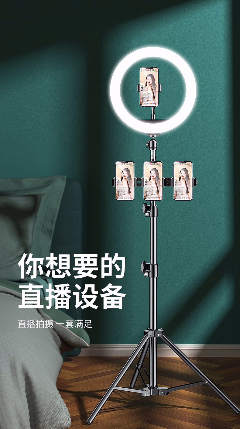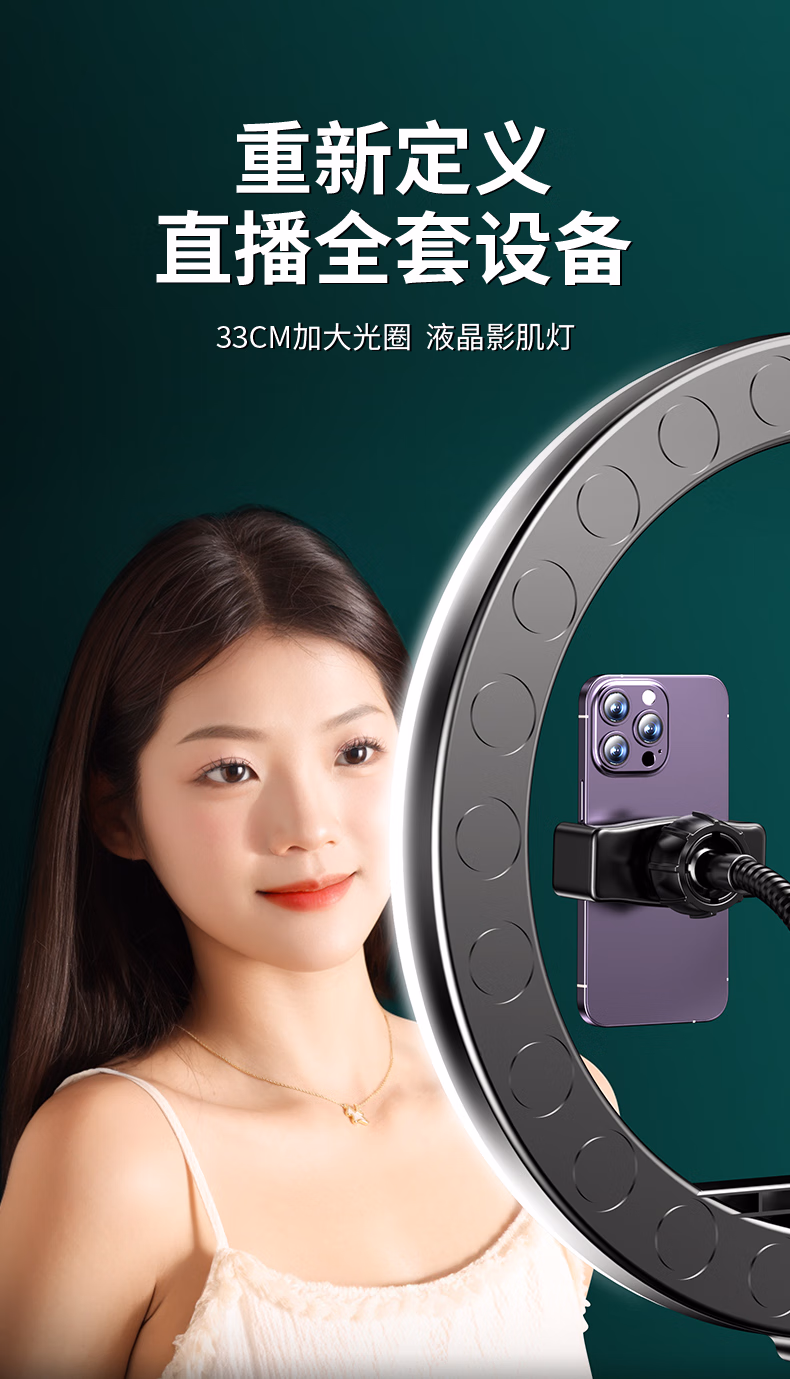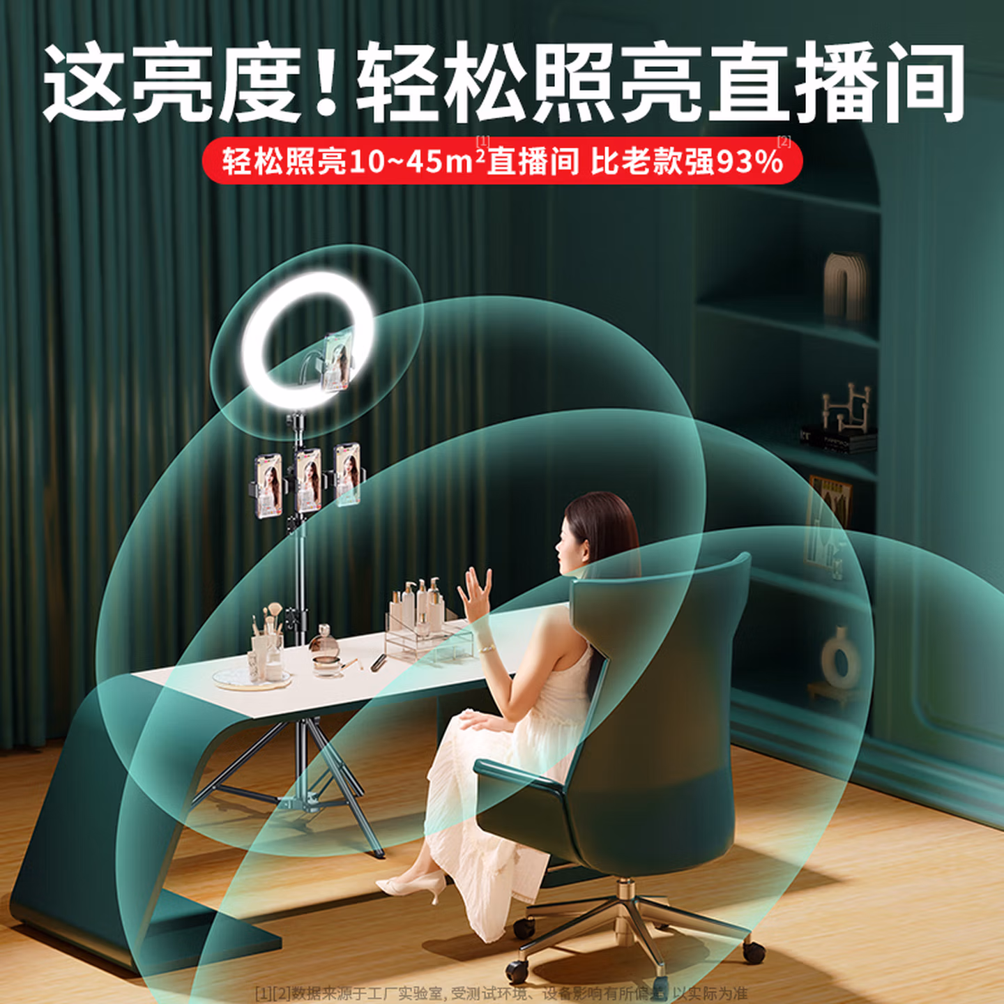 > 科润乐【33CM大光圈】直播补光灯摄影灯落地支架设备全套LED柔光灯手机直播间环形美颜灯拍摄灯直播灯架