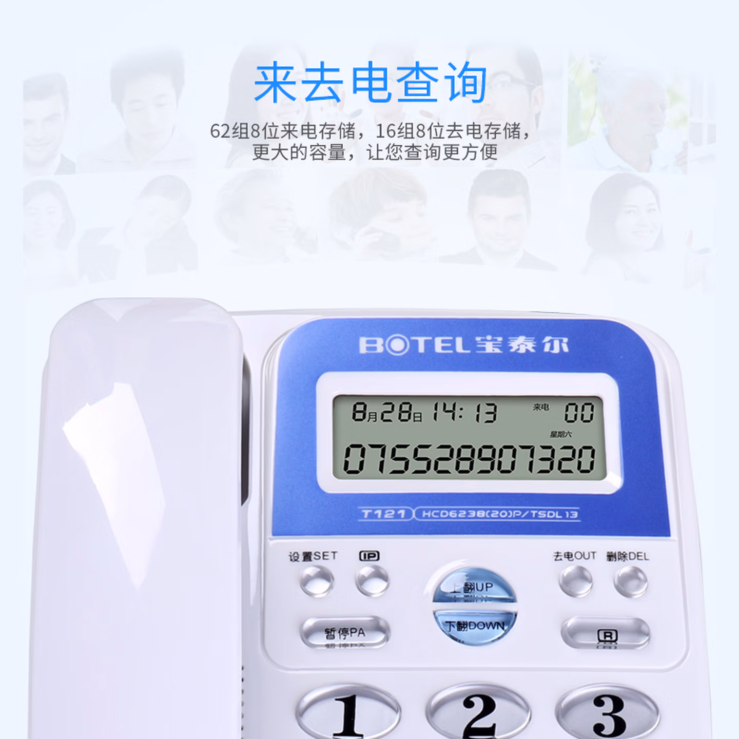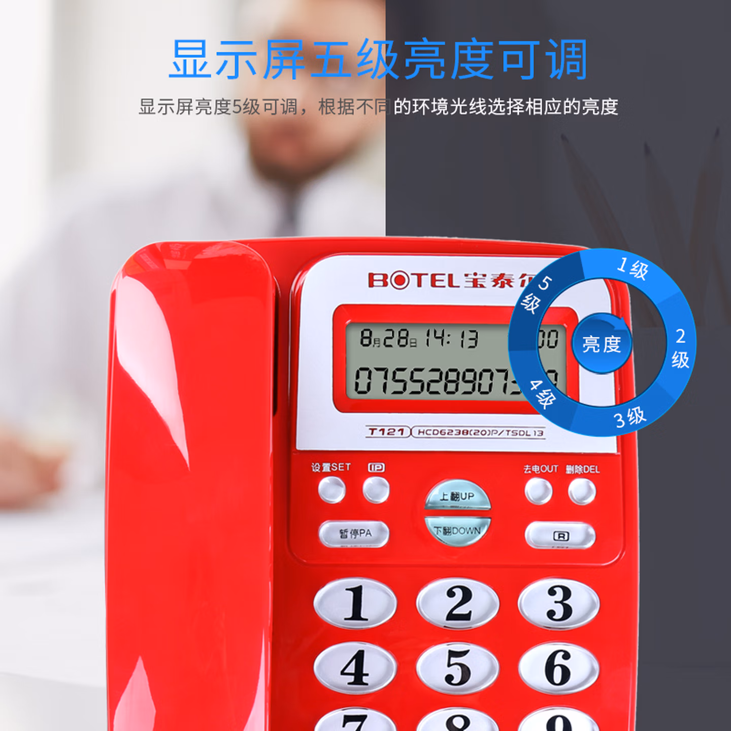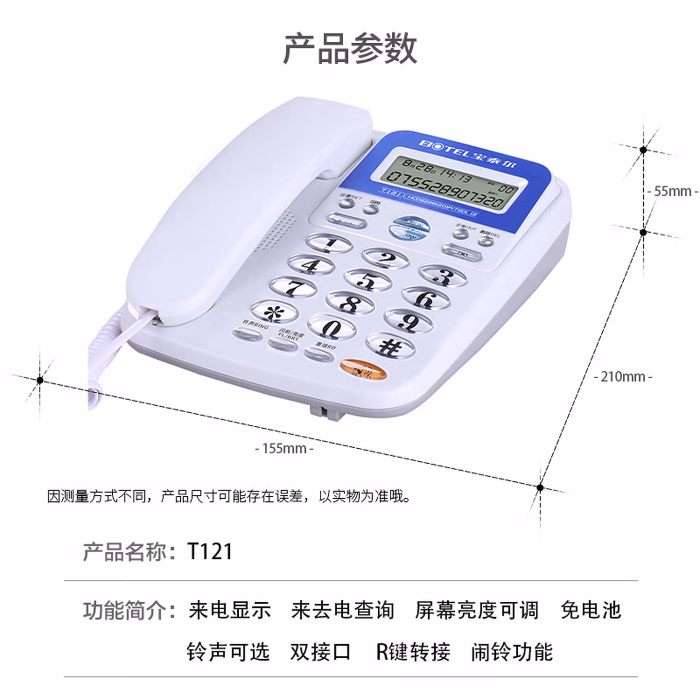> 宝泰尔(BOTEL)电话机座机 固定电话 办公家用 免电池/大按键 T121 蓝色