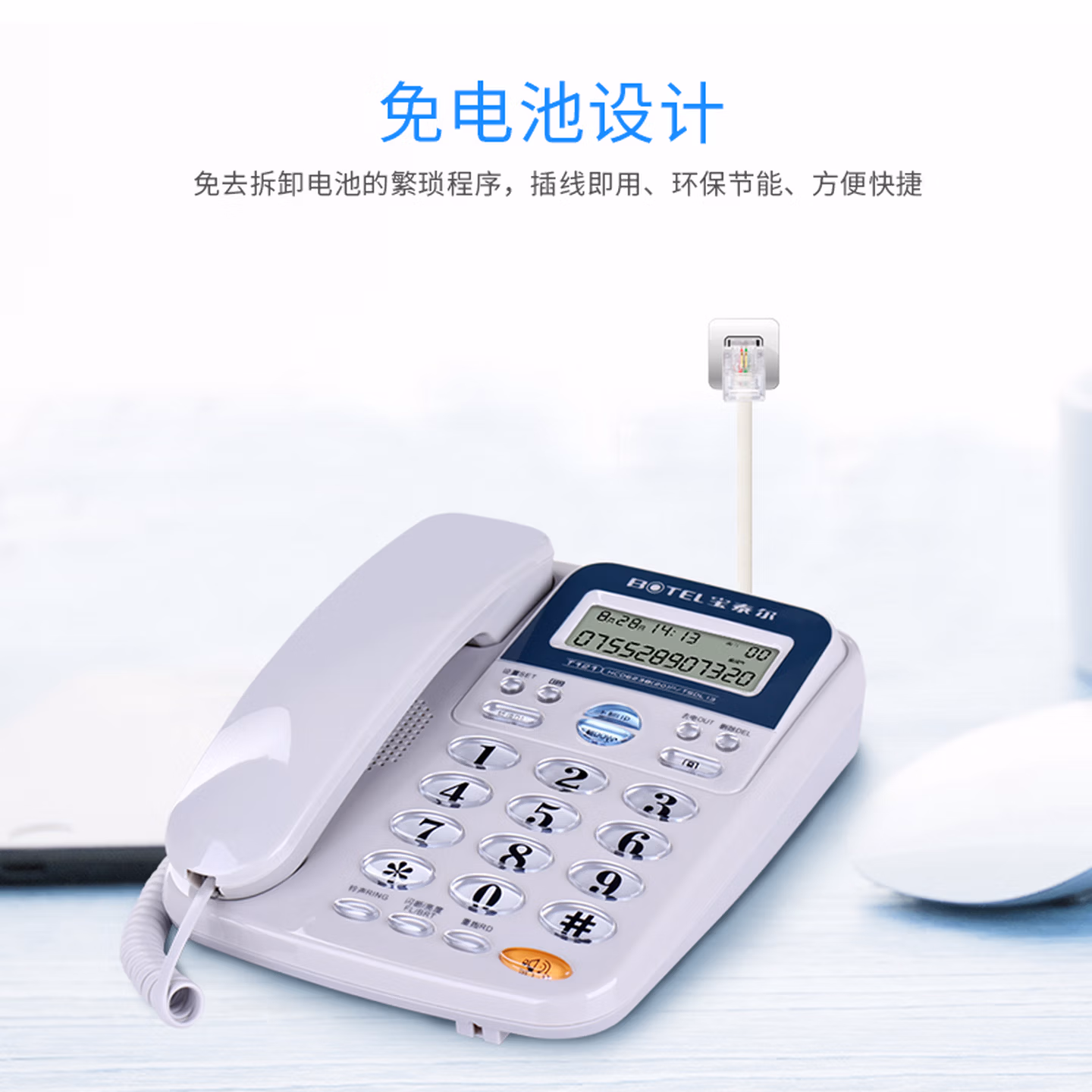 宝泰尔(BOTEL)电话机座机 固定电话 办公家用 免电池/大按键 T121 蓝色
