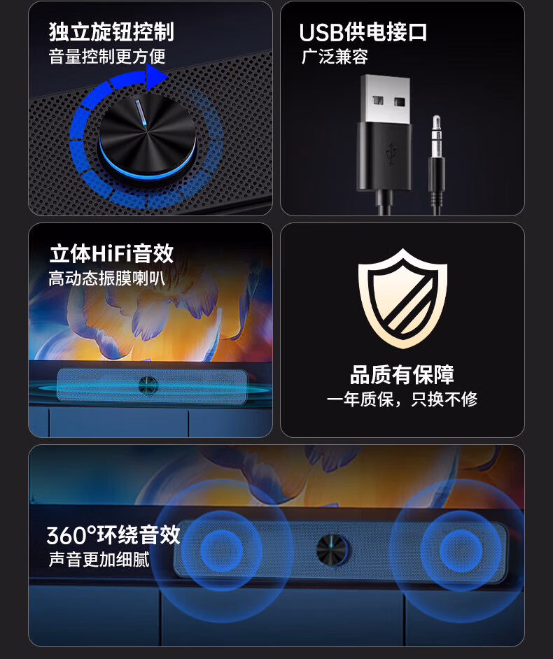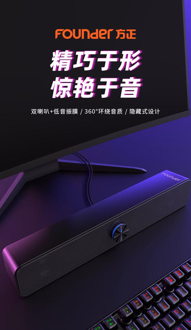 > 方正(Founder)小型高音质车载音箱 桌面重低音炮新款有线有线台式电脑音响家用桌面重低音响 双喇叭环绕立体音箱