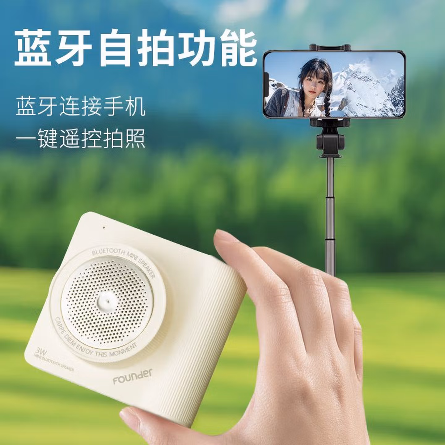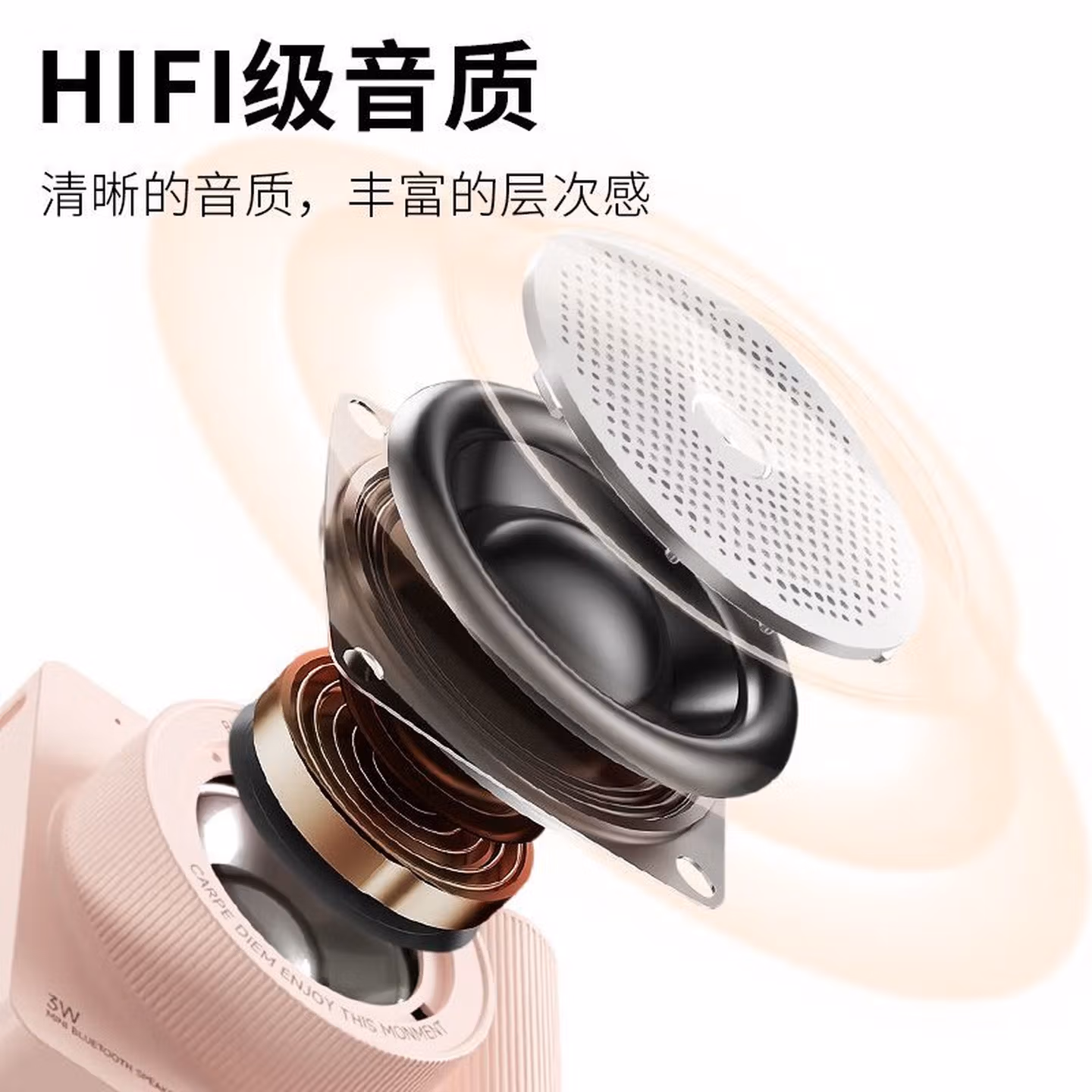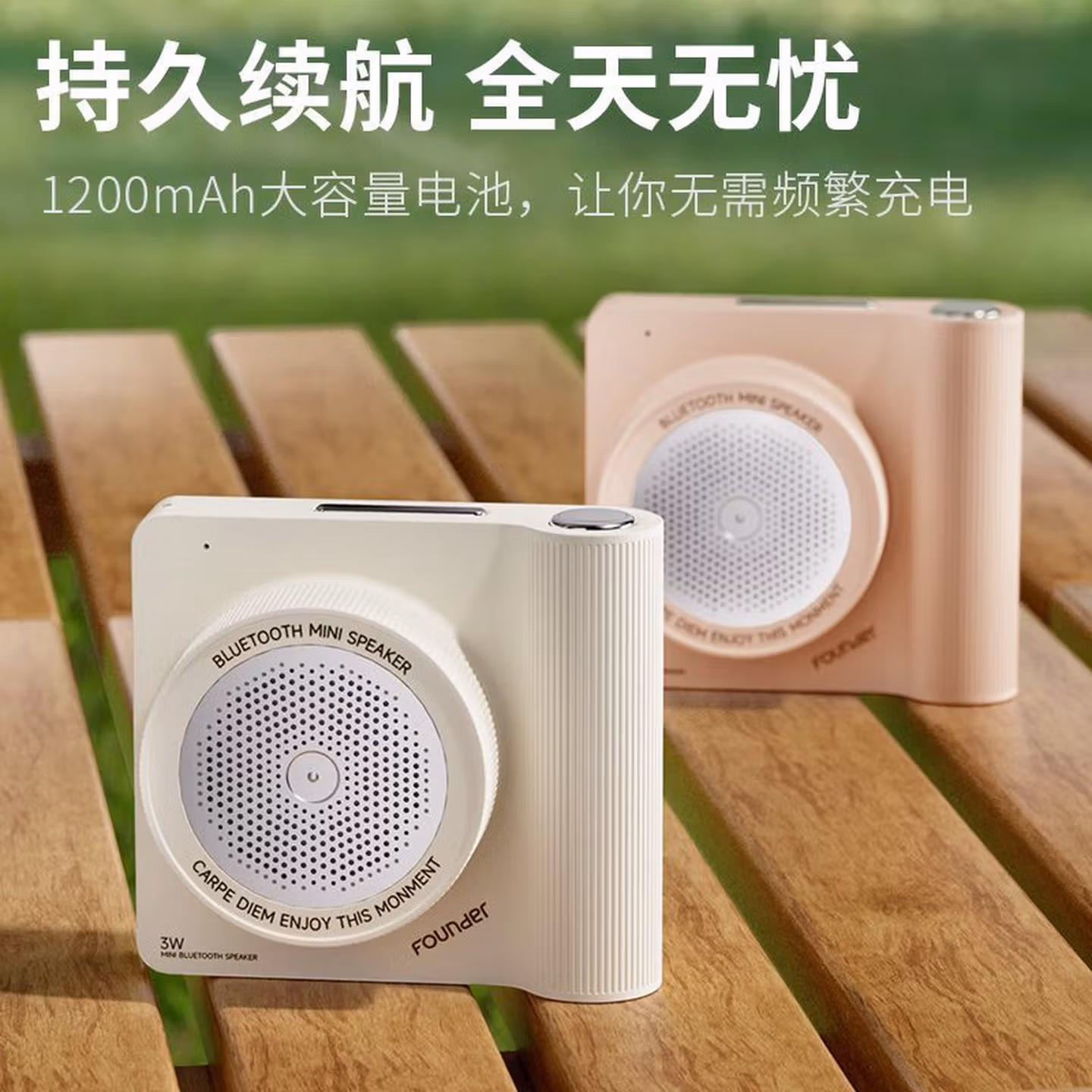 > 方正(Founder)迷你无线蓝牙音箱便携自拍蓝牙音响户外露营生日节日礼物 相机蓝牙音箱-樱花粉