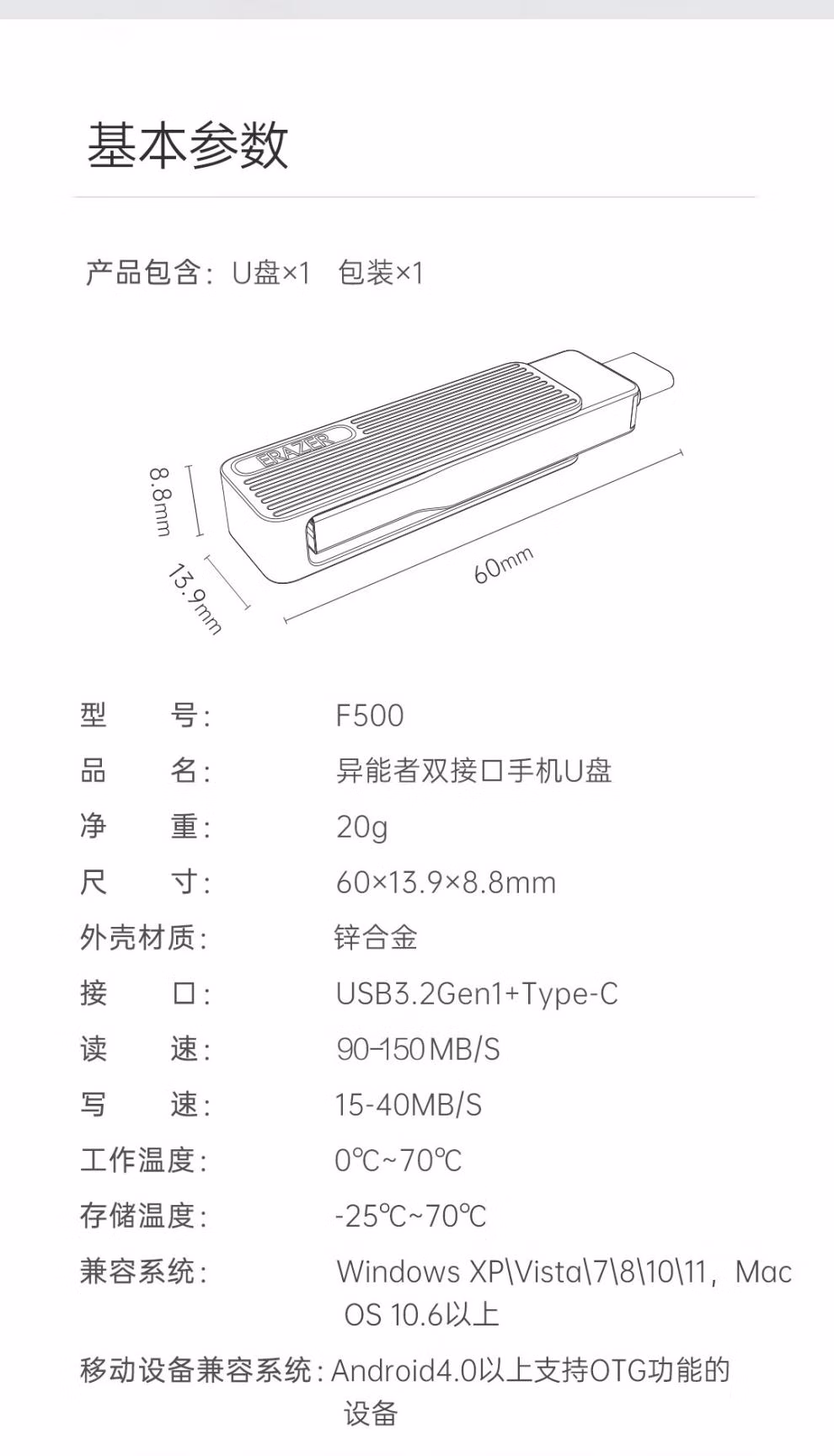 > 联想天骄联想(Lenovo)异能者U盘F500双接口typec/USB移动大容量车载手机1T F500枪色(150MB/s) typec+USB 256GB x 官方标配