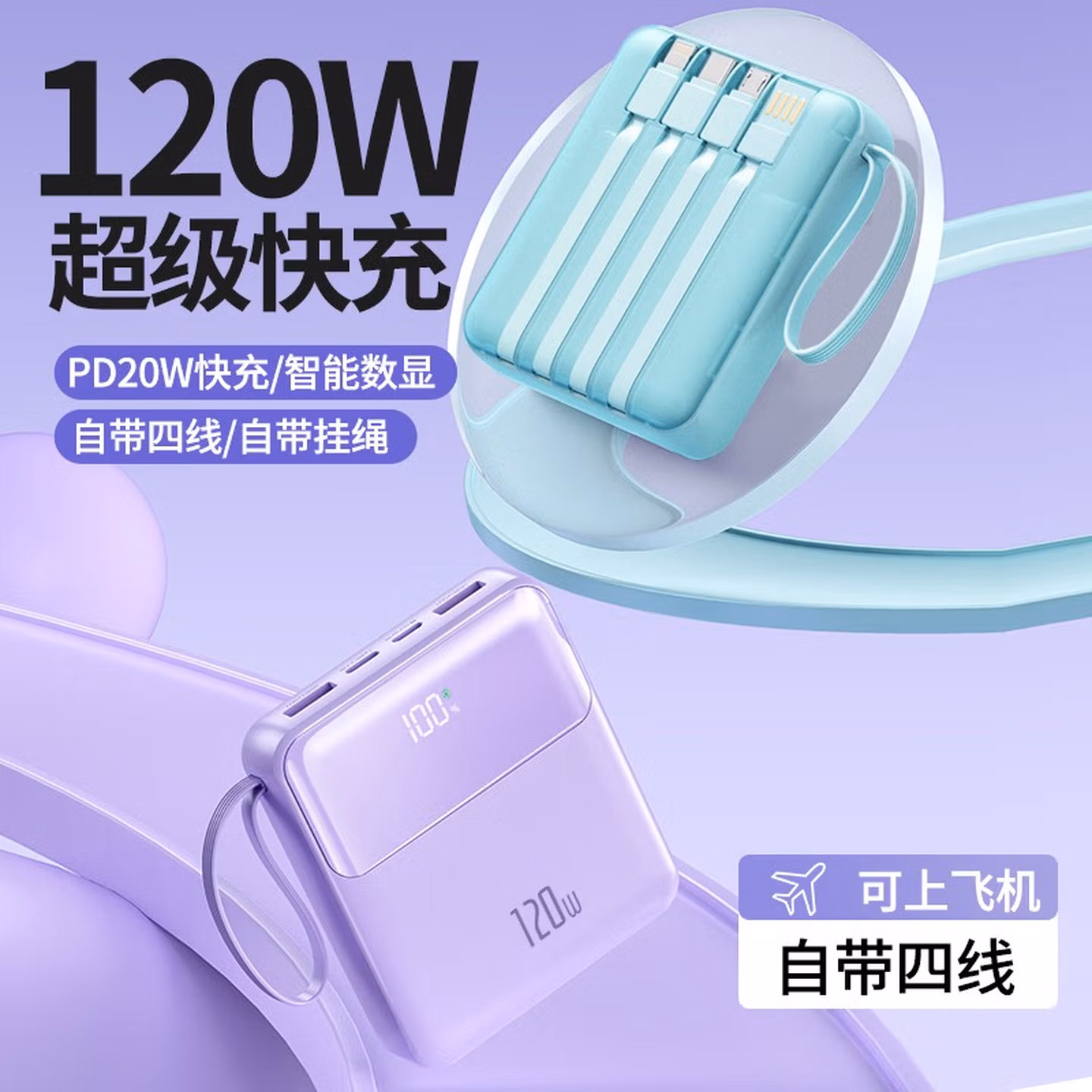 梦幻紫【自带四线 | 超级快充 | 精准数显】至尊版