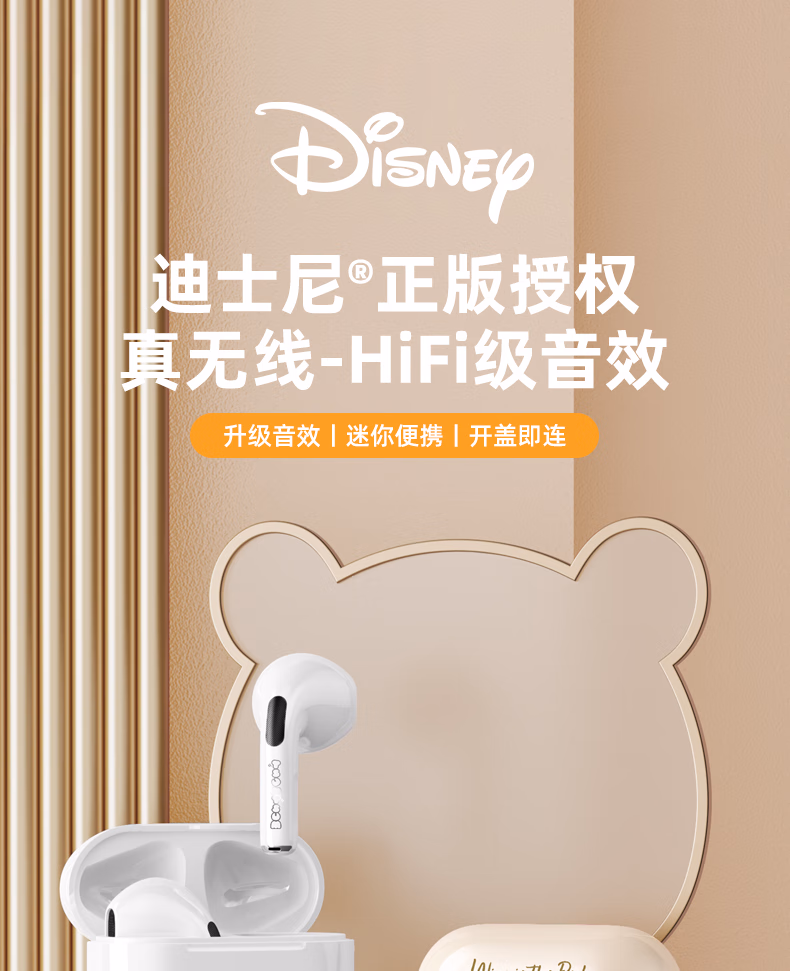 > 迪士尼(DISNEY)无线蓝牙耳机 半入耳式运动音乐通话降噪电竞游戏耳机强音质 适用苹果小米vivo 【维尼白色】