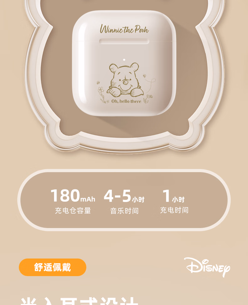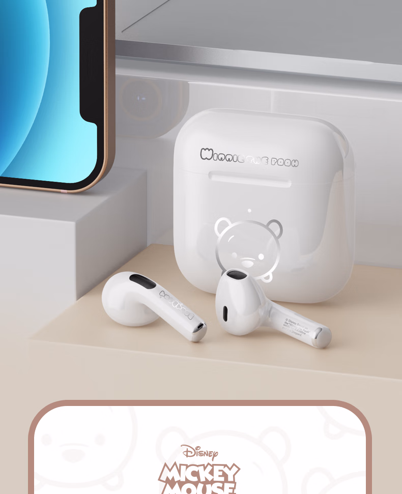 迪士尼(DISNEY)无线蓝牙耳机 半入耳式运动音乐通话降噪电竞游戏耳机强音质 适用苹果小米vivo 【维尼白色】