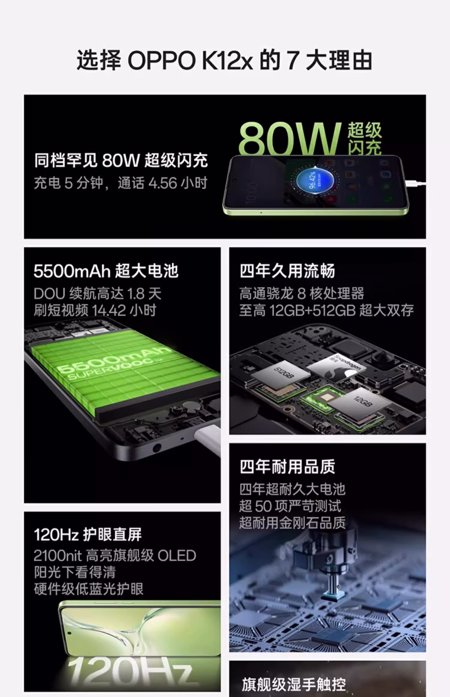 > OPPOOPPO K12x OLED直屏 80W闪充 5500mAh大电池 120Hz 骁龙5G手机 钛空灰 12GB+512GB