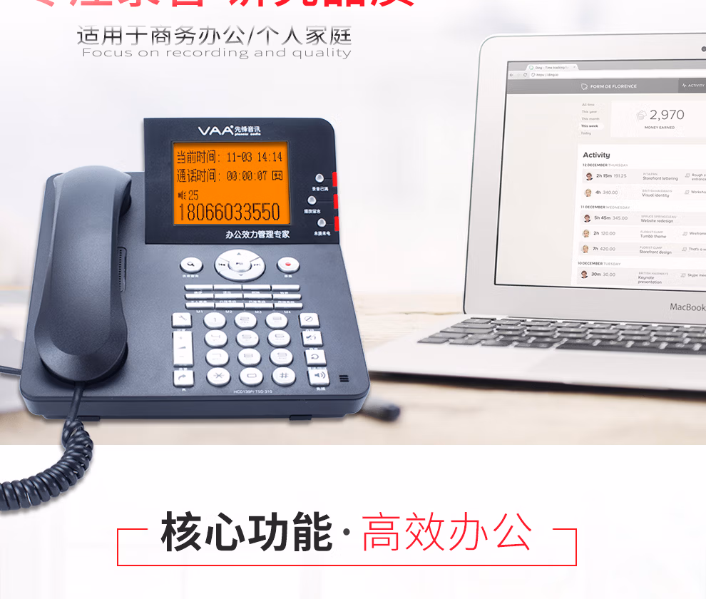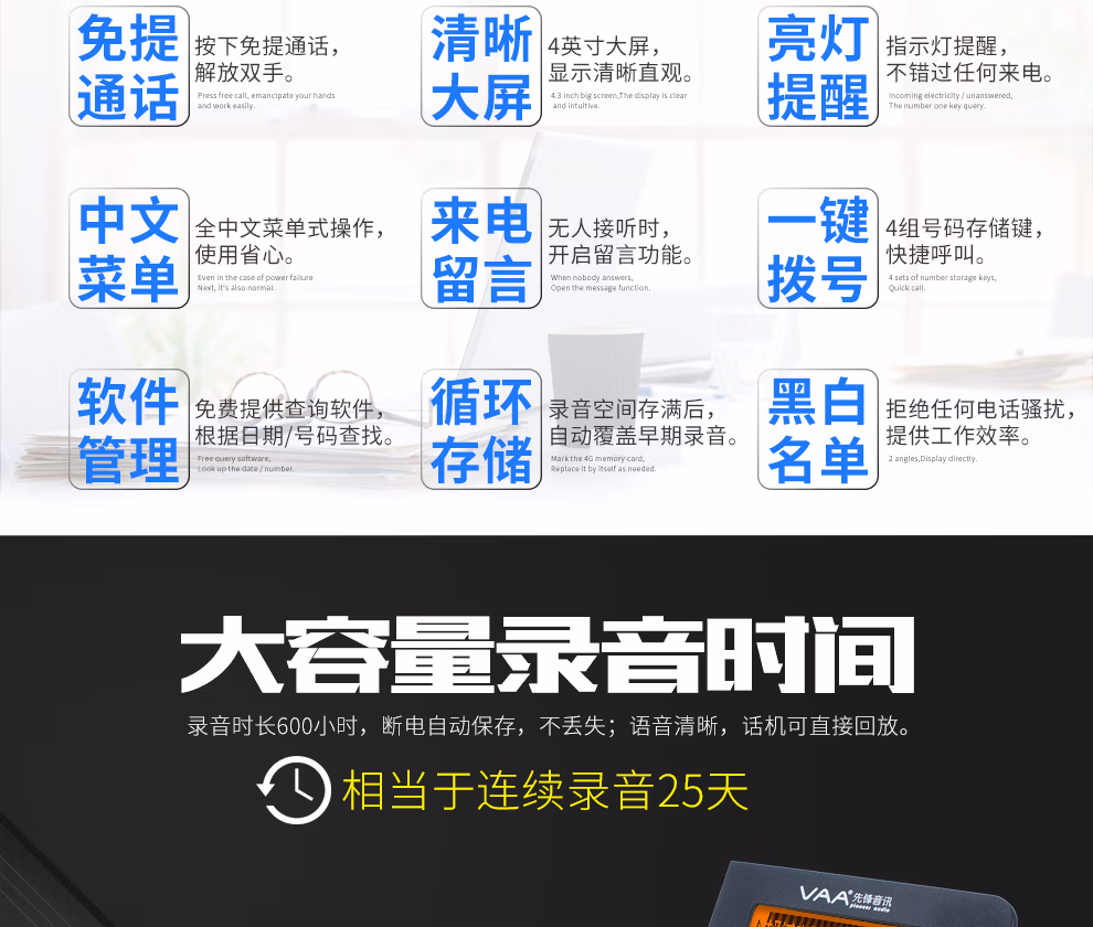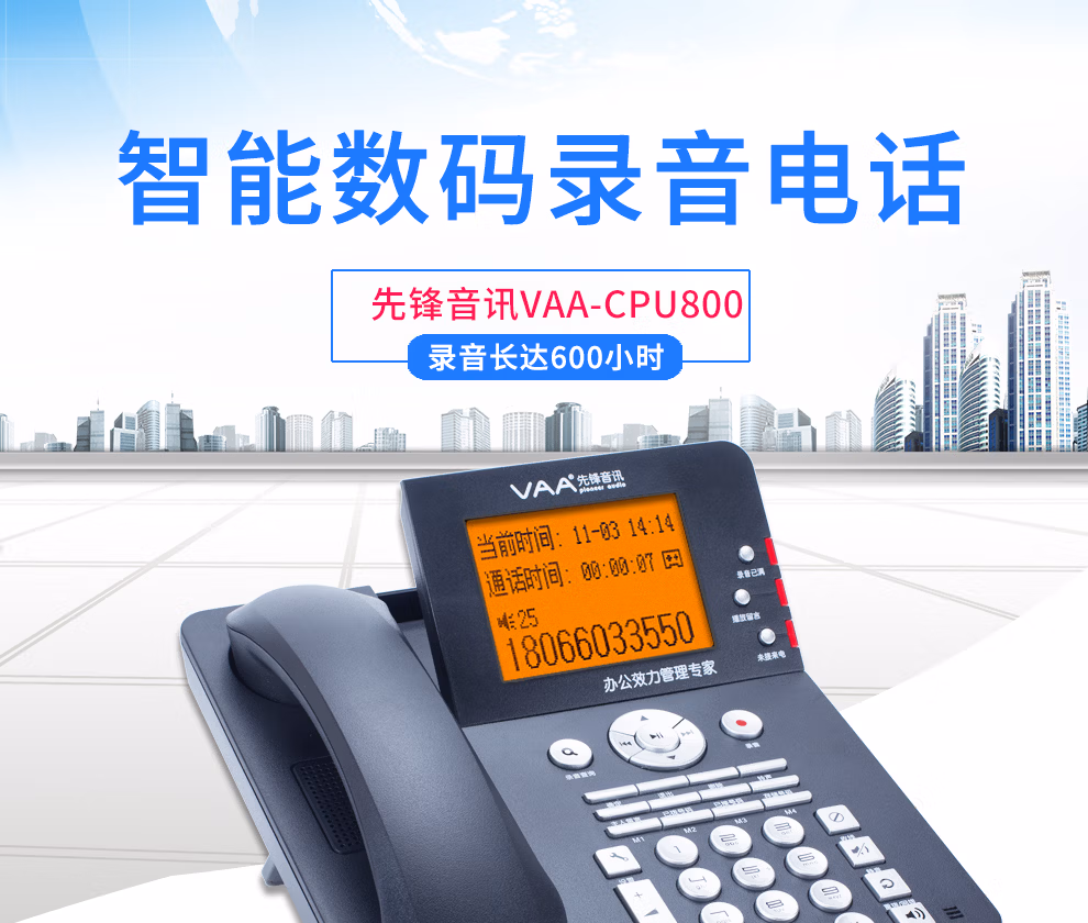> VAA CPU800先锋音讯录音电话机 商务办公电话座机录音通话管理中文菜电话本