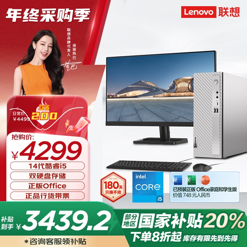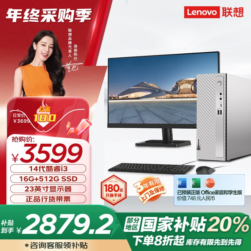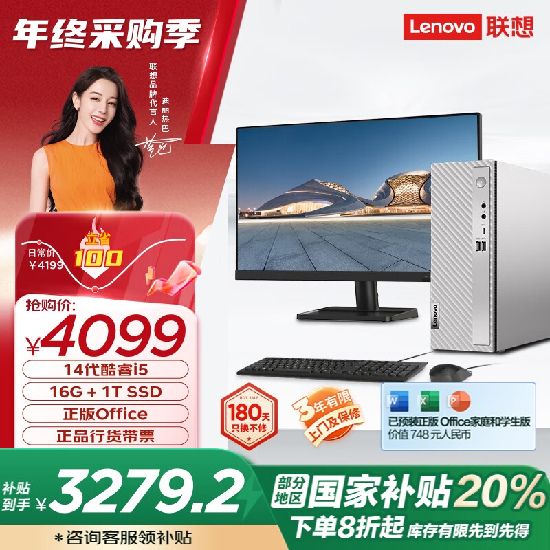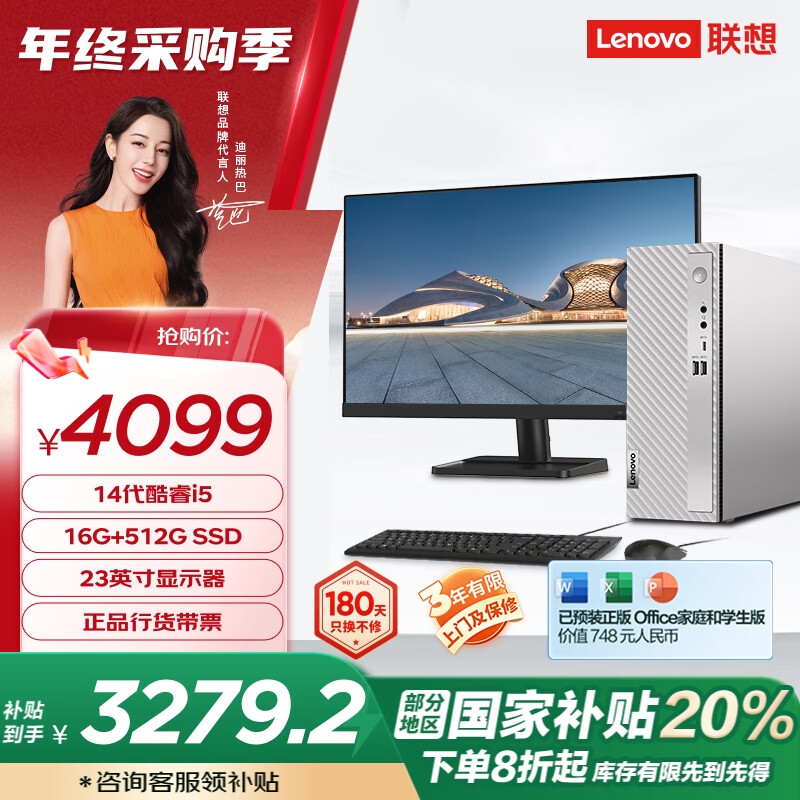 > 联想(Lenovo)天逸510S商务办公台式机电脑主机(酷睿14代i5-14400 16G 2TB HDD+512G SSD win11)23英寸显示器