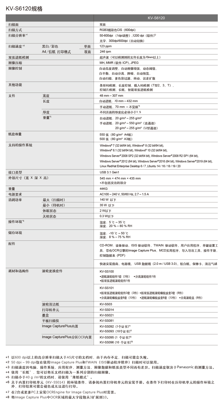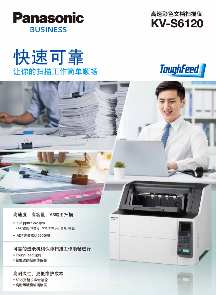 > 松下(Panasonic)KV-S6120 扫描仪 A3幅面高速高清办公文档 123ppm/246ipm
