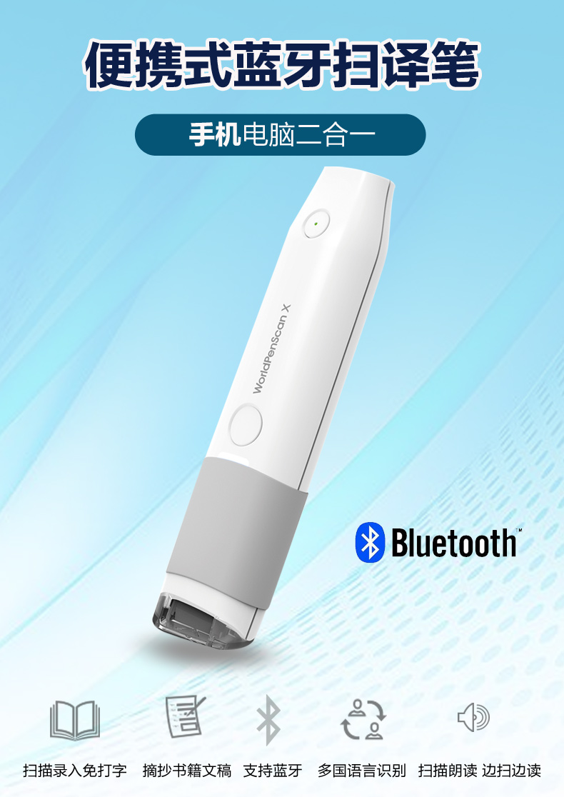 亚伯兰扫描笔蓝牙扫译笔X手机无线速录笔翻译笔手持便携式扫描仪摘抄文字扫描录入笔支持印象笔记错题扫描笔 MSE05(蓝牙版)