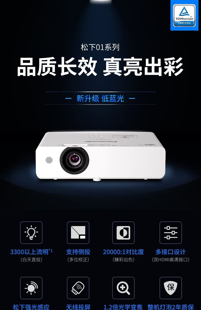 > 松下(Panasonic)投影仪办公 商务会议 培训教学家用 高清宽屏 投影机 WX4201【高亮旗舰 大型会议】 官方标配