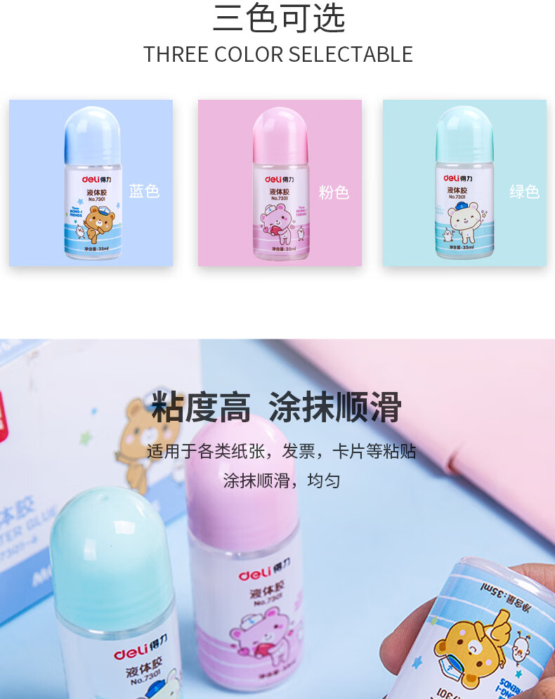 得力(deli)35ml高透明胶水 高粘度液体胶 可水洗手工滴胶儿童胶水 颜色随机 单支装凑单 7301