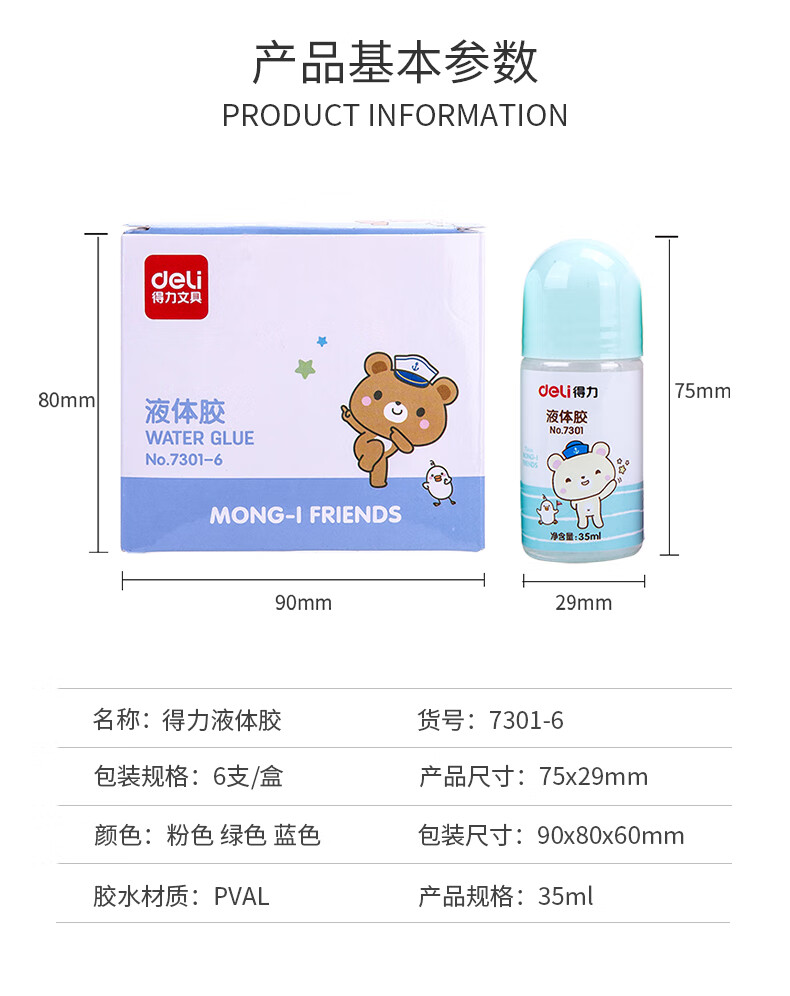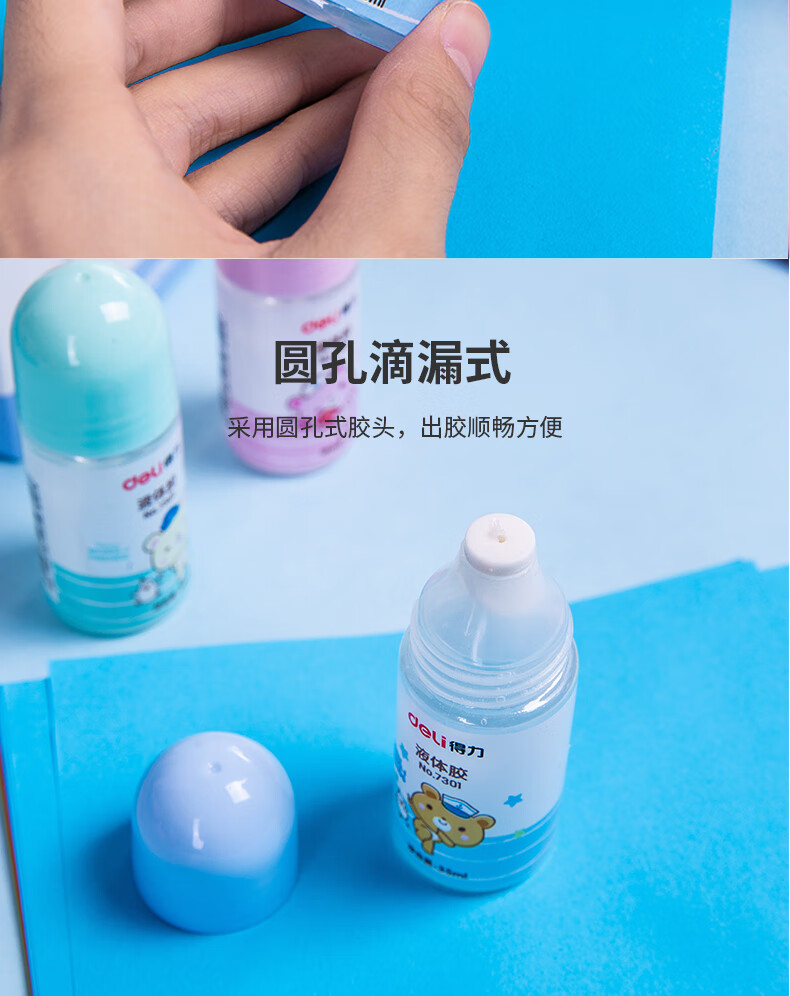 > 得力(deli)35ml高透明胶水 高粘度液体胶 可水洗手工滴胶儿童胶水 颜色随机 单支装凑单 7301