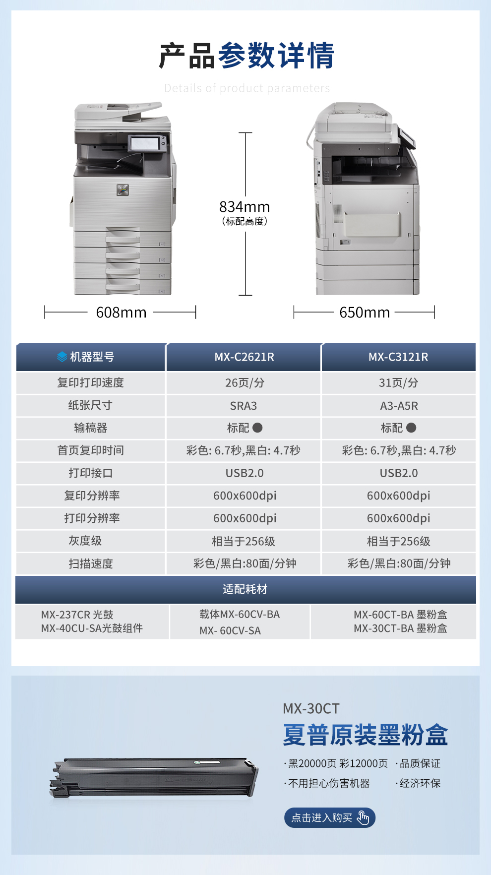 夏普(SHARP) MX-C3121R 复印机 彩色多功能数码复合机 标配 (含双面输稿器 单层纸盒) 免费上门安装售后