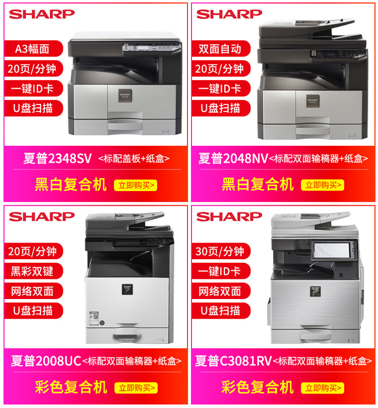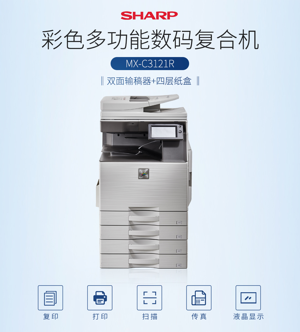 > 夏普(SHARP) MX-C3121R 复印机 彩色多功能数码复合机 标配 (含双面输稿器 单层纸盒) 免费上门安装售后