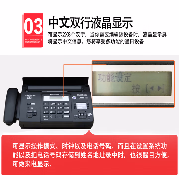 > 松下(Panasonic)KX-FT876CN热敏传真机 KX-FT876CN传真机液晶显示中文/带自动切纸