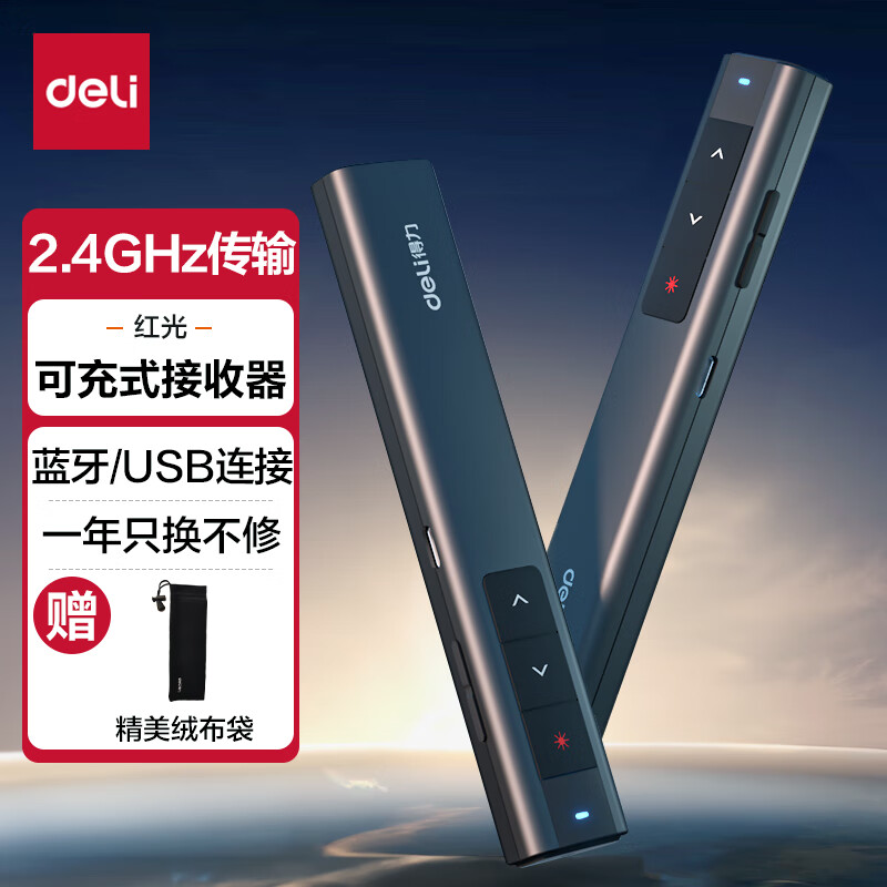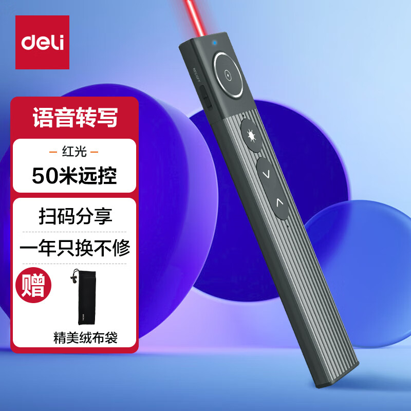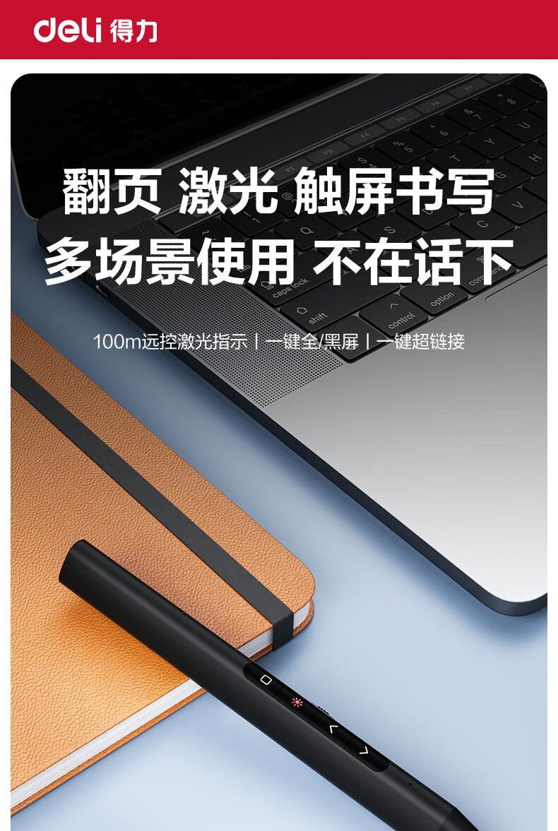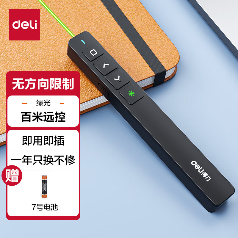 > 得力(deli)翻页笔教师用ppt投影笔激光翻页笔激光笔演讲笔 无线演示翻页器课件笔 逗猫笔红光 黑色MA58