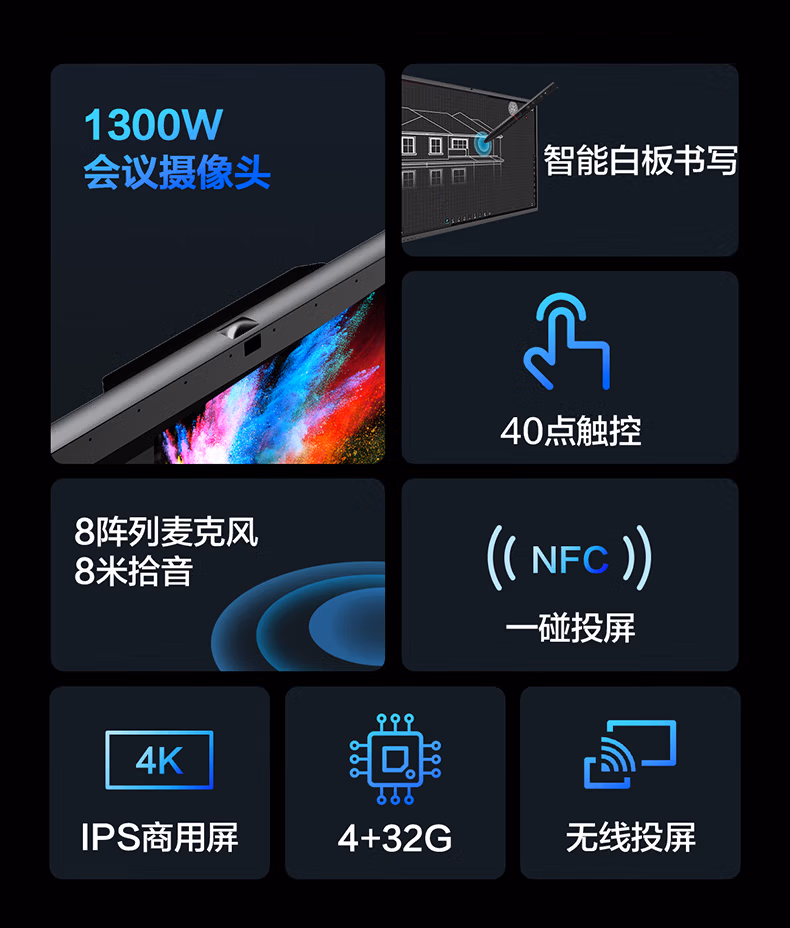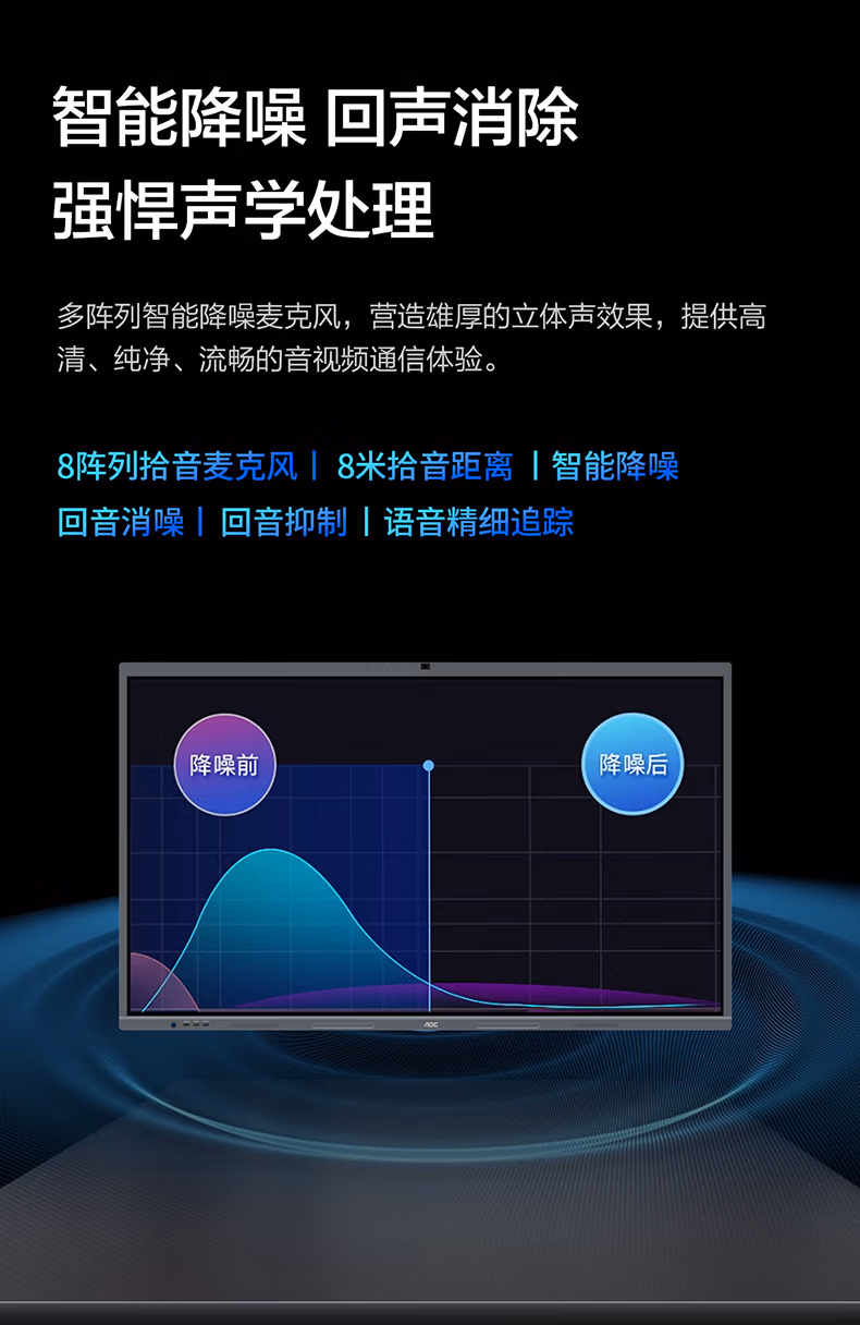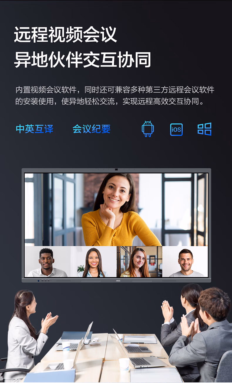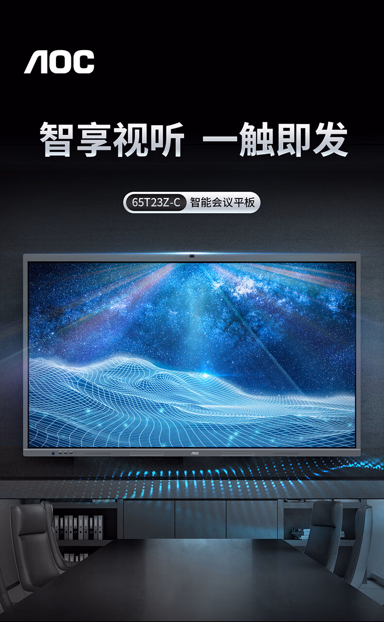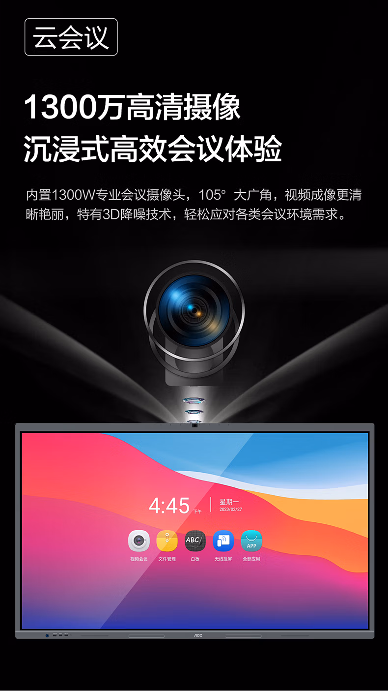 > AOC会议平板一体机65英寸触摸屏教学智慧黑板4K电子白板内置摄像头拾音麦会议一体机会议大屏65T23Z-C 65英寸 安卓系统+投屏器+移动支架