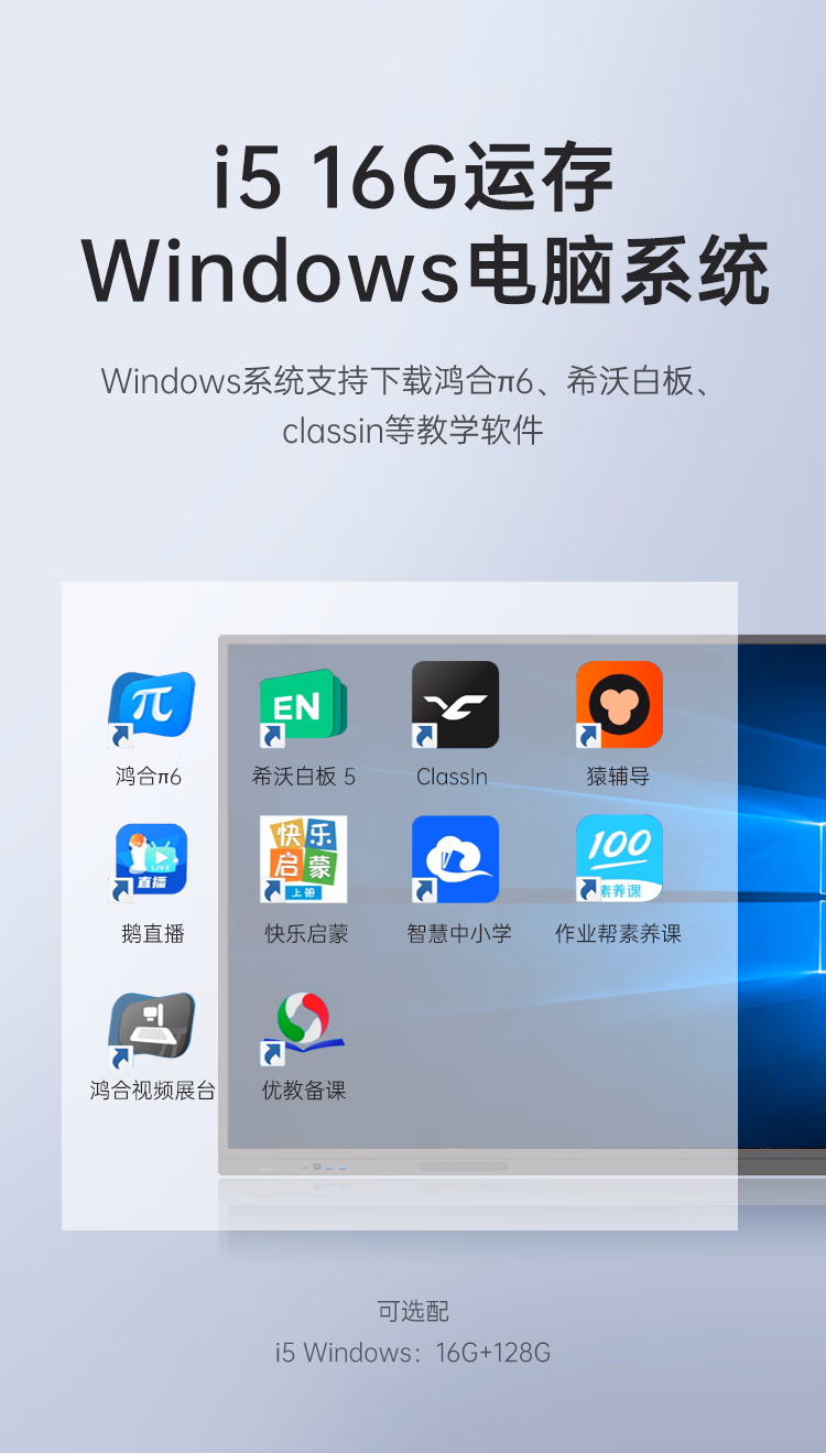 newline65英寸鸿合教学一体机触摸屏电视会议平板 ON65+win10 i5(16G+128G)+移动架 智能电子白板培训办公家用多媒体